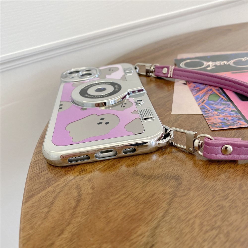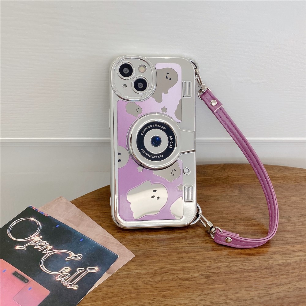 Mirror Surface Ghost TPU Case for iPhone 13 Phone Cover Camera Shaped Phone Shell with Handy Strap