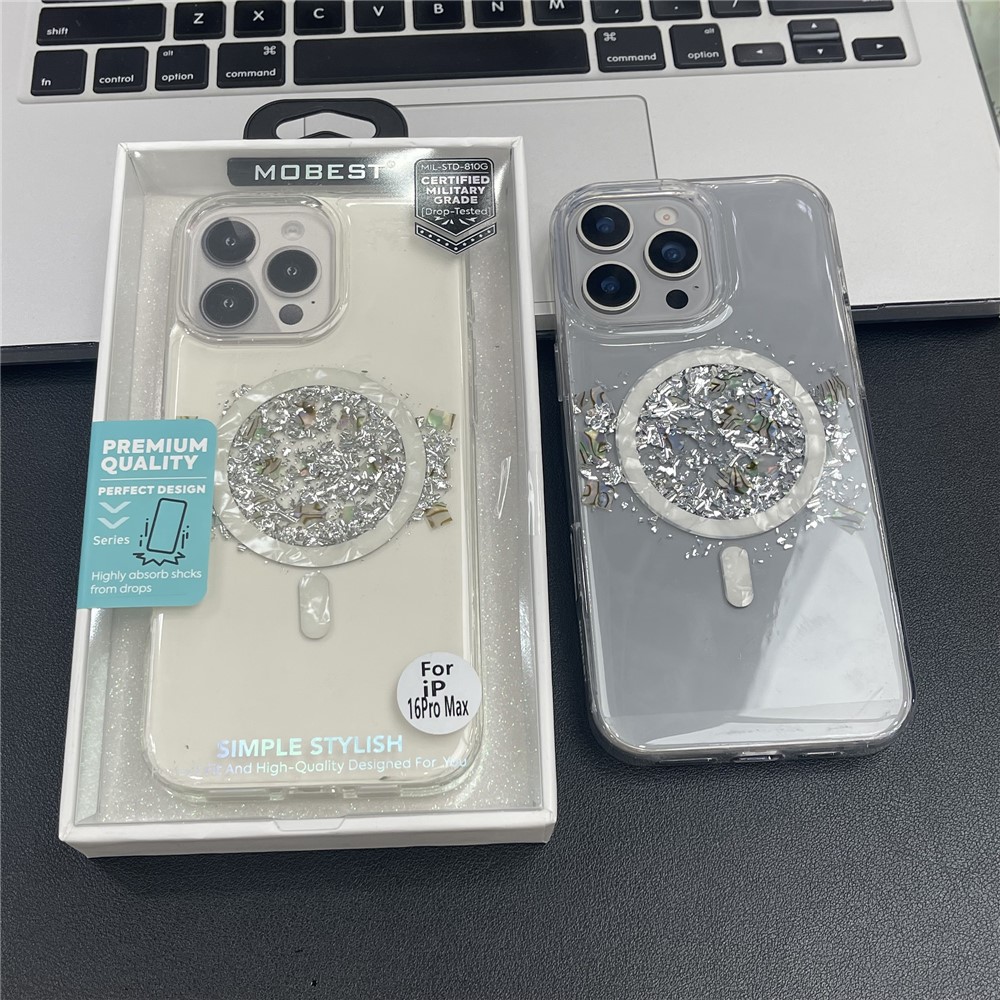 - Shell-Shaped Glitter Design Features a stylish shell-shaped glitter pattern that adds a chic and shimmering touch to your phone, enhancing its aesthetic appeal