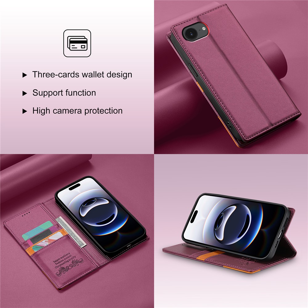 N.BEKUS P3 For iPhone 16e Case RFID Blocking Wallet Stand PU Leather Flip Phone Cover - Wine Red $18.15