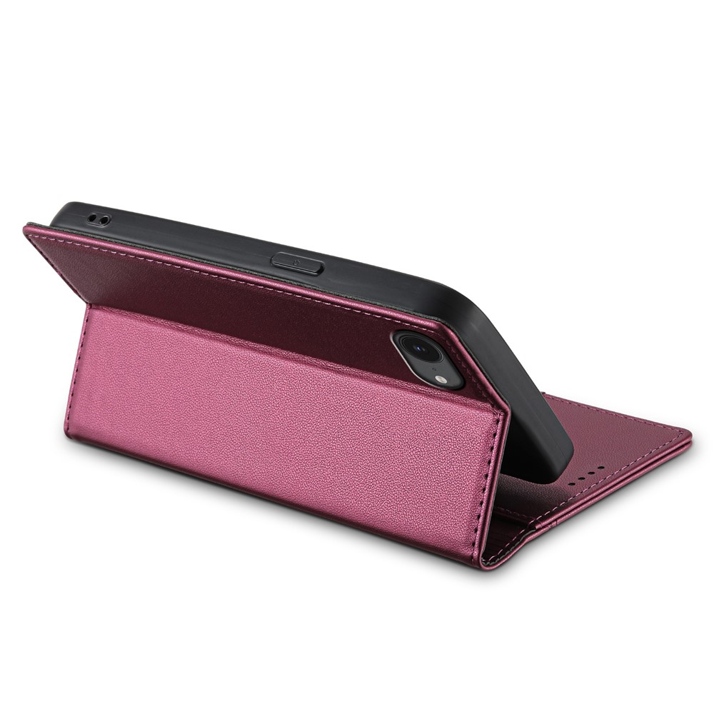 N.BEKUS P3 For iPhone 16e Case RFID Blocking Wallet Stand PU Leather Flip Phone Cover – Wine Red