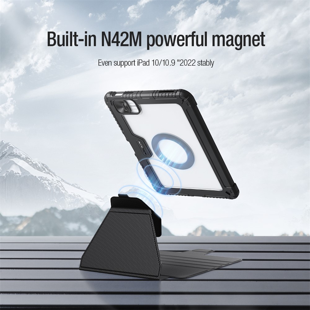 NILLKIN Bumper Leather Case Pro for iPad (2025) / 10.9 (2022) Detachable PU Leather Tablet Case Stand Cover – Black