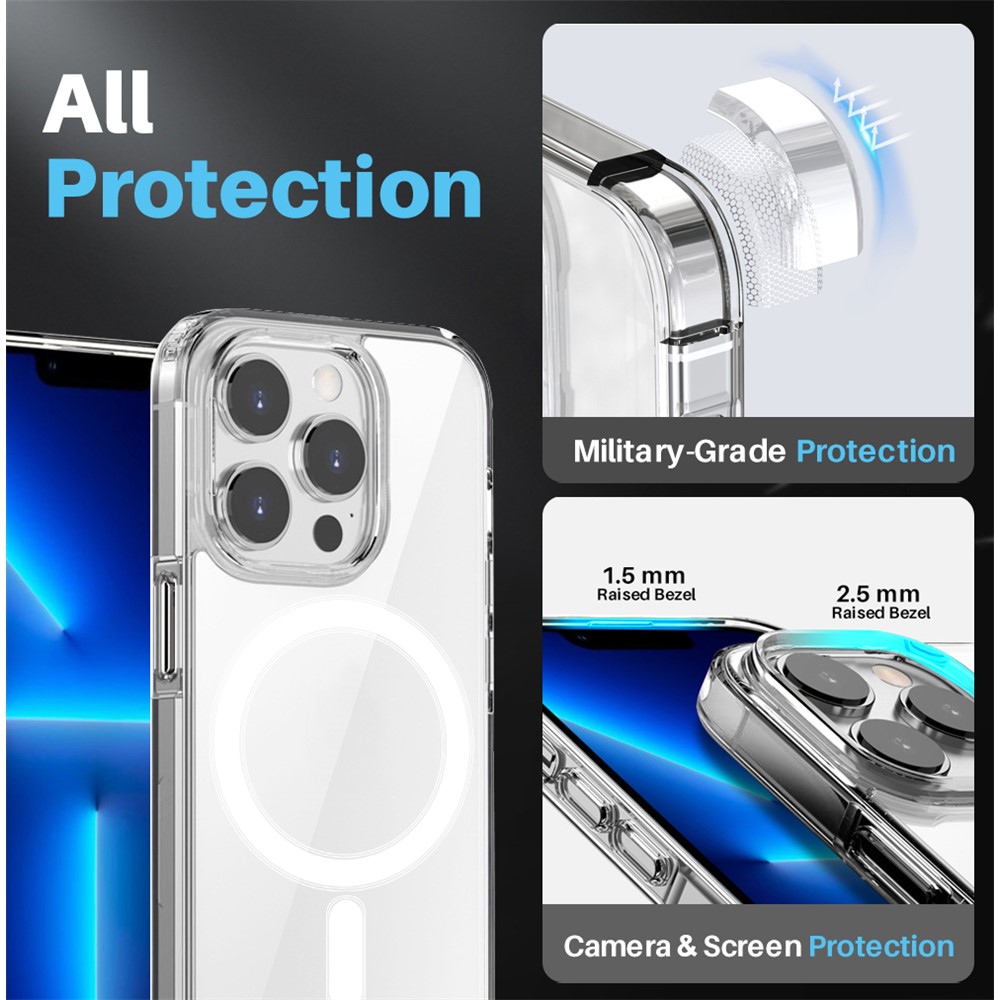 NORTHJO For iPhone 13 Pro Max Anti-Drop Phone Case with Tempered Glass Film + Lens Protector, Compatible with MagSafe