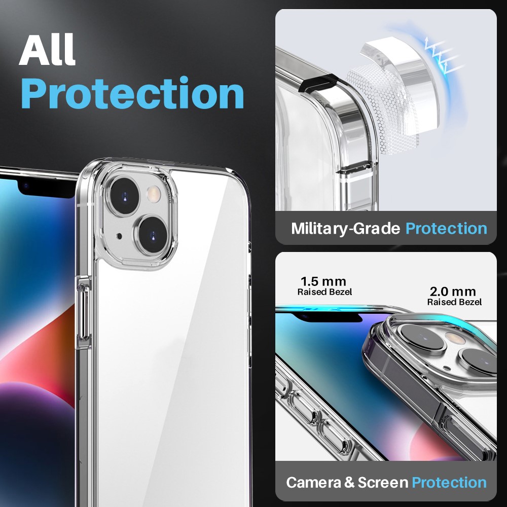 NORTHJO For iPhone 14 Plus Case PC+TPU Phone Cover + Screen Protector + Camera Lens Protector