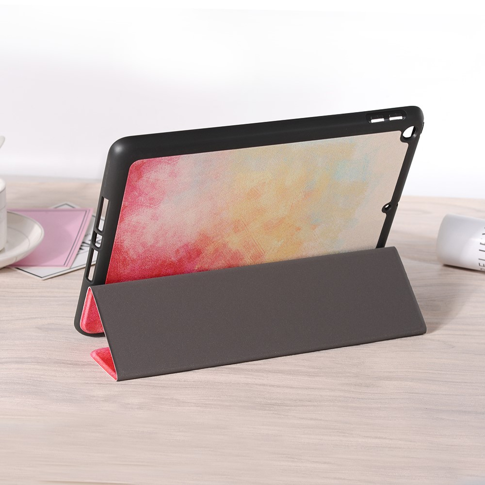 Pattern Printing Leather Stand Protective Case with Pen Slot for iPad 10.2 (2021)/(2020)/(2019) – Red/Yellow