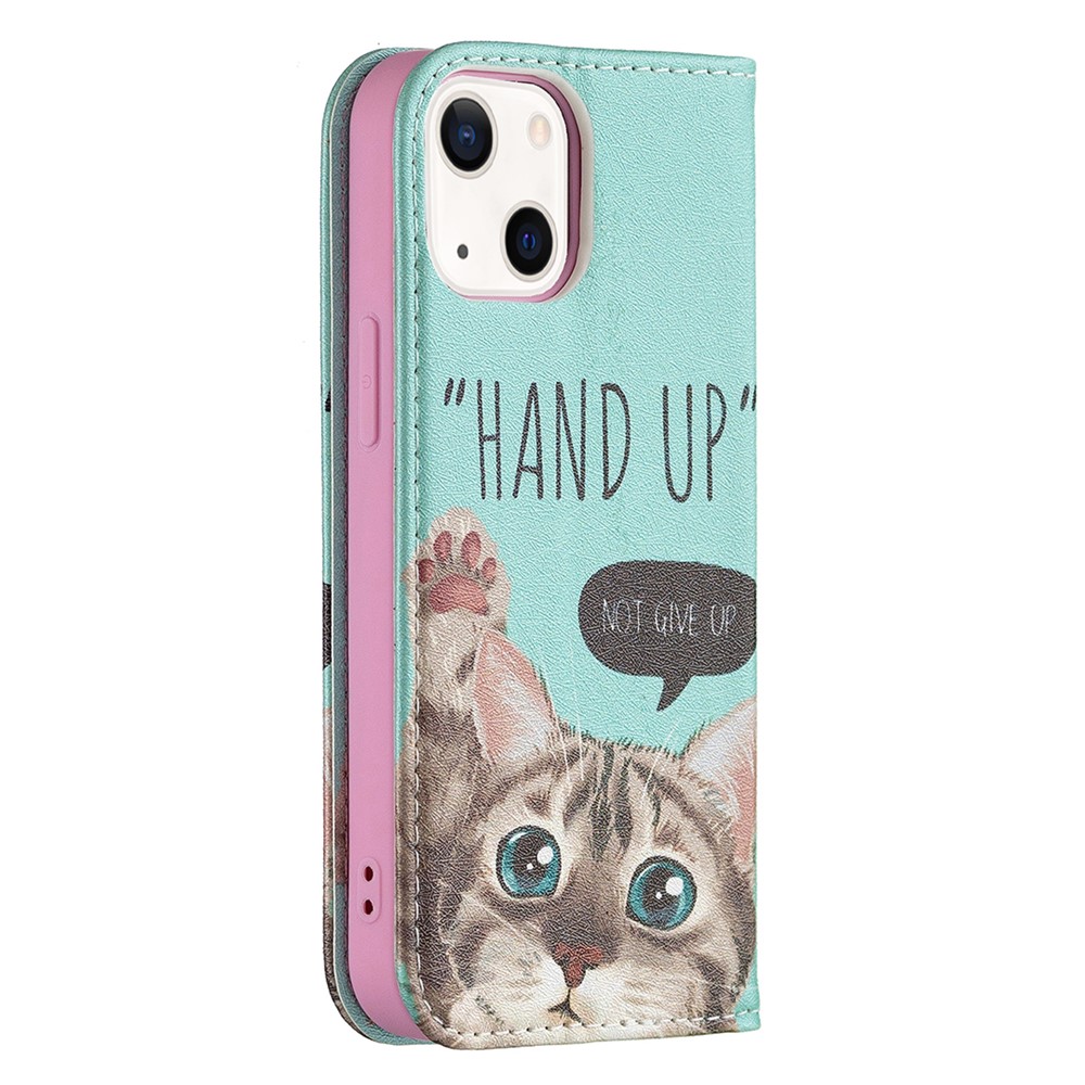Pattern Printing Magnetic Auto-absorbed Leather Case Wallet Stand Phone Cover for iPhone 13 mini 5.4 inch – Cat