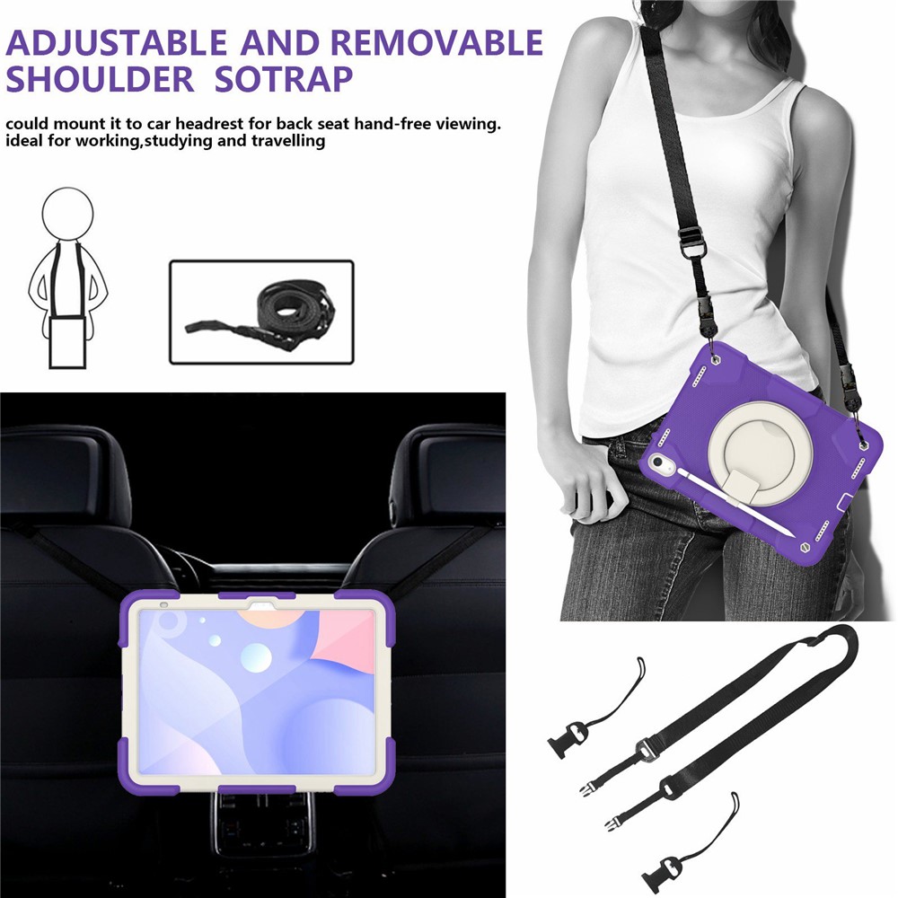 - With Kickstand & Shoulder Strap: The kickstand case makes it much more comfortable for typing, watching videos, Internet surfing, reading while keeping both your hands free & avoids any joint pain, not only as a kickstand to use but also as a handle, which is easy to carry. The shoulder strap is adjustable and removable, which is easy to use, and convenient hanging the tablet on your shoulder