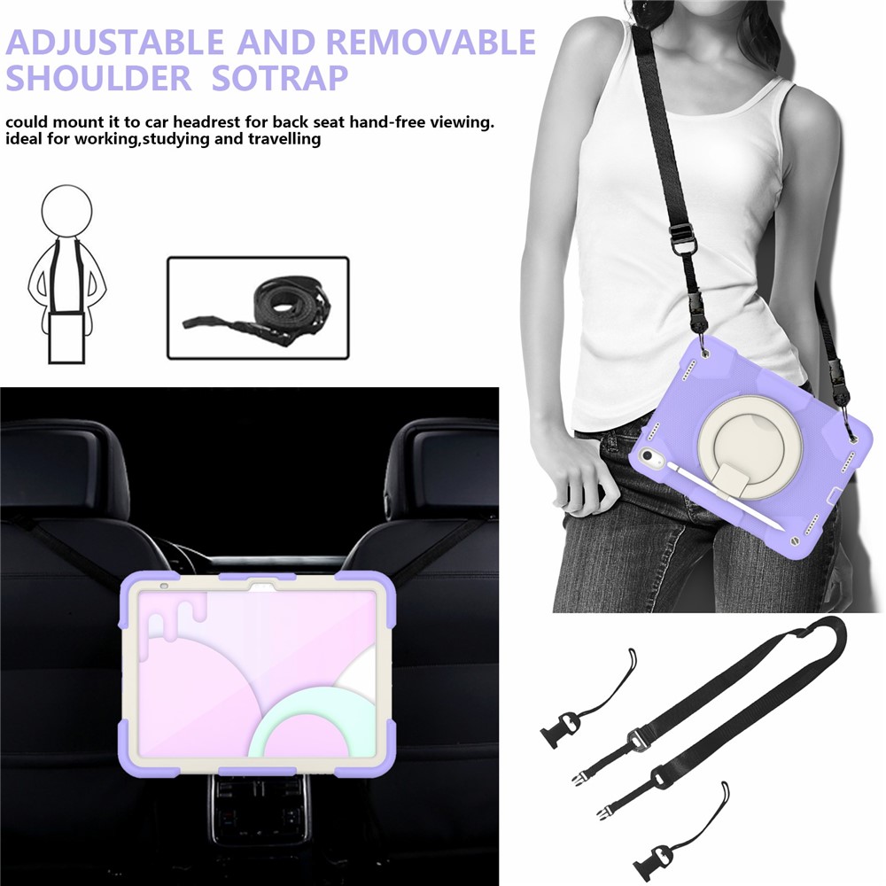 - With Kickstand & Shoulder Strap: The kickstand case makes it much more comfortable for typing, watching videos, Internet surfing, reading while keeping both your hands free & avoids any joint pain, not only as a kickstand to use but also as a handle, which is easy to carry. The shoulder strap is adjustable and removable, which is easy to use, and convenient hanging the tablet on your shoulder