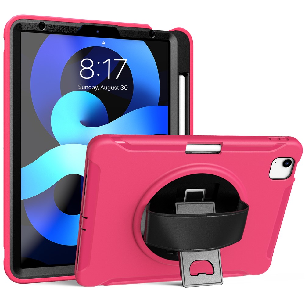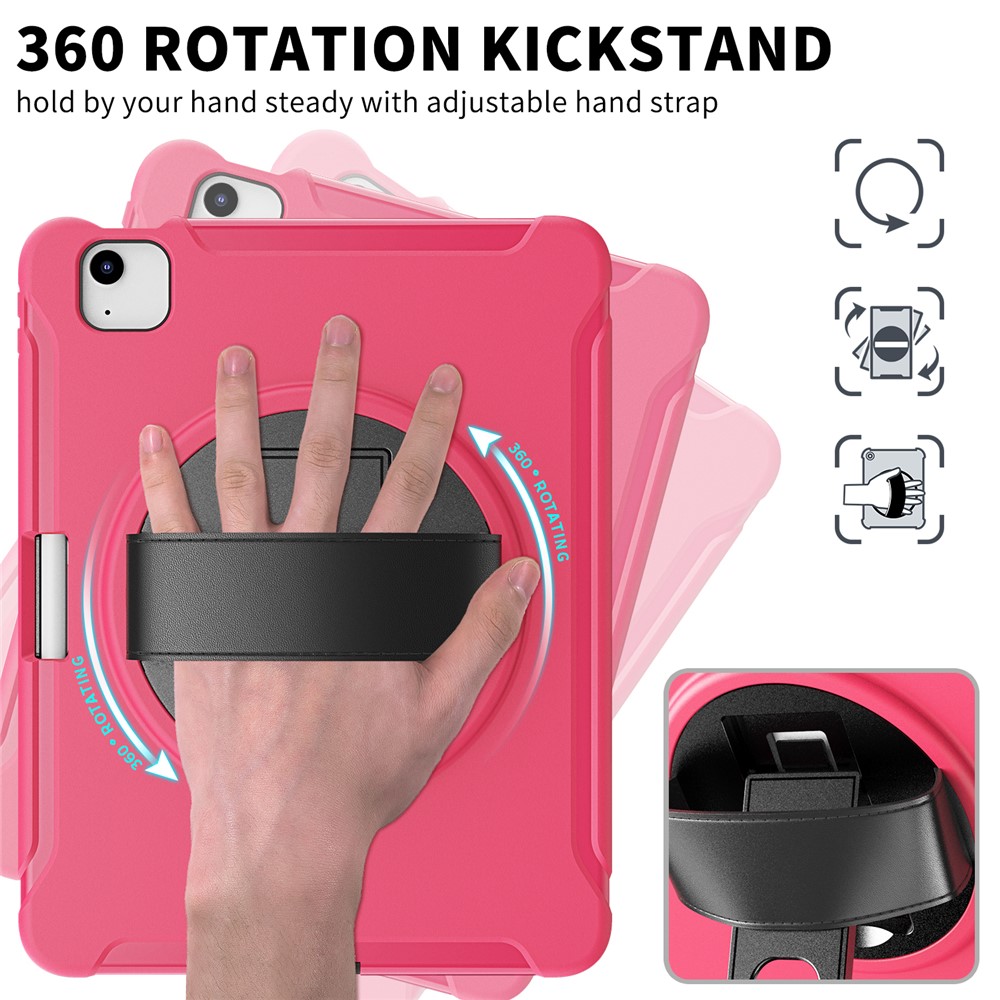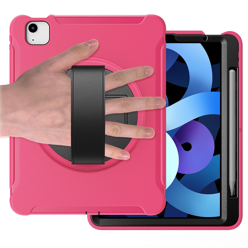 PC + TPU Cover Case with Pen Slot and 360° Swivel Kickstand Shell for iPad Air (2020)/Air (2022) – Pink