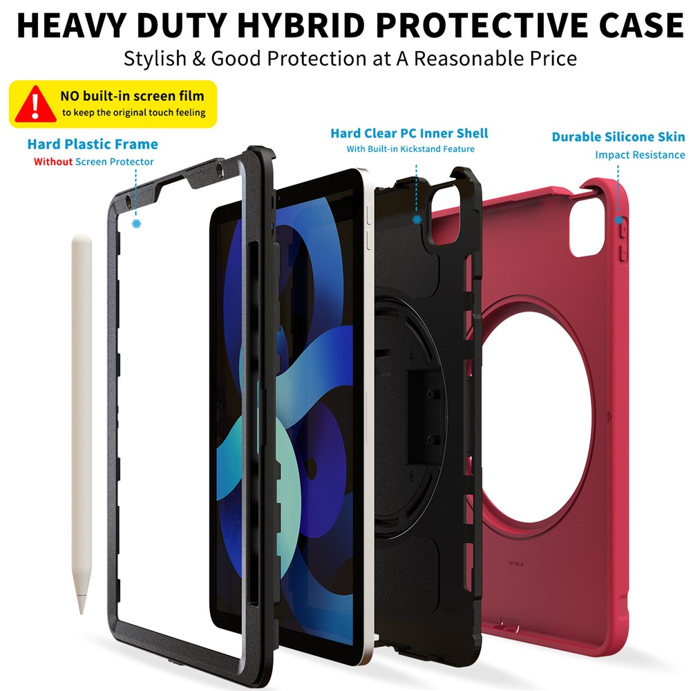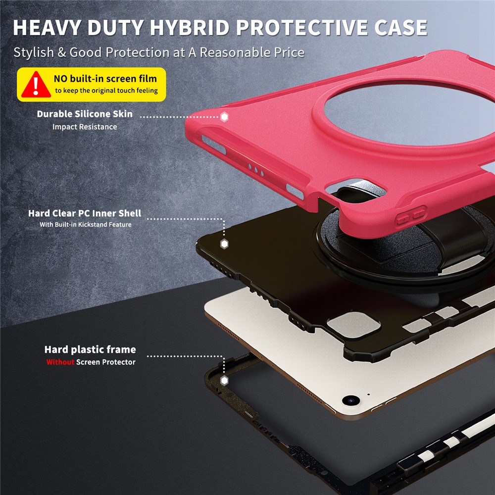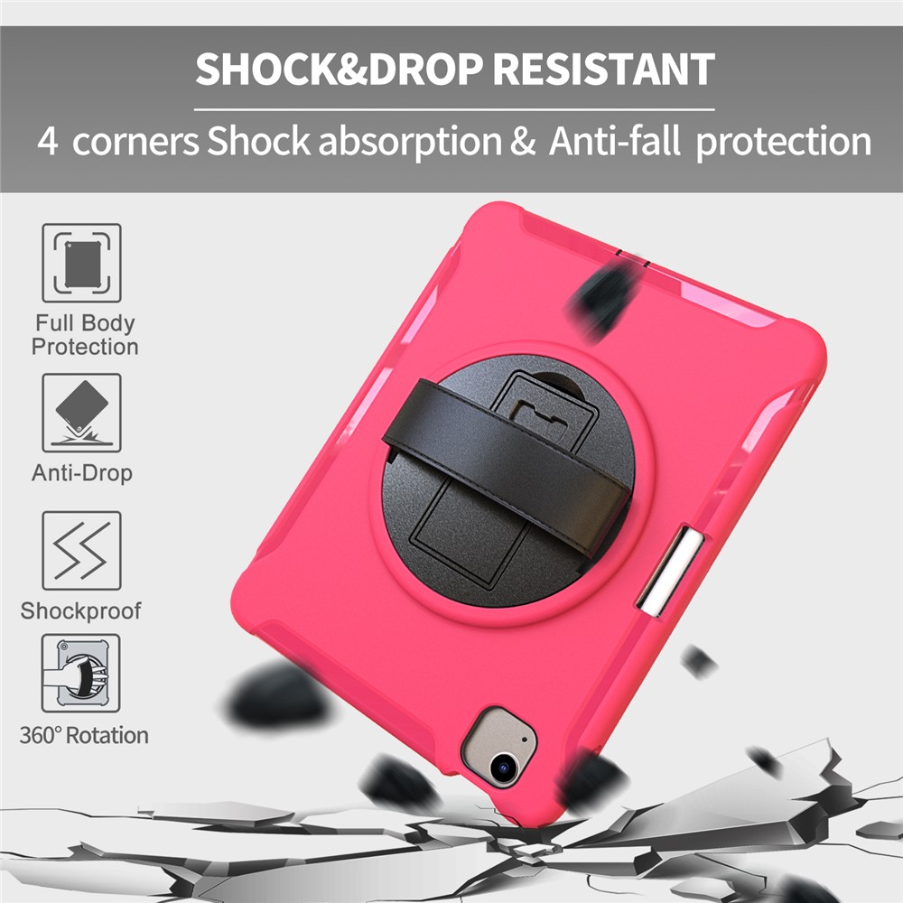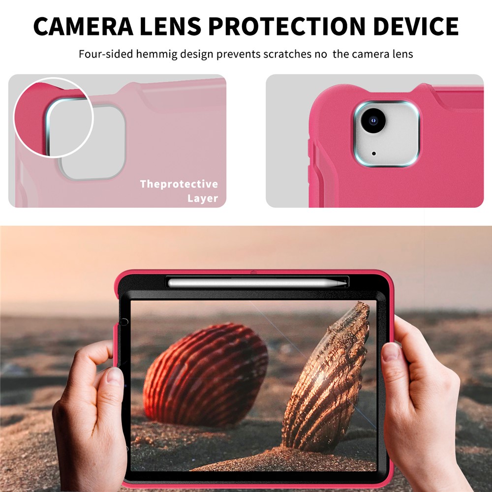 PC + TPU Cover Case with Pen Slot and 360° Swivel Kickstand Shell for iPad Air (2020)/Air (2022) – Pink