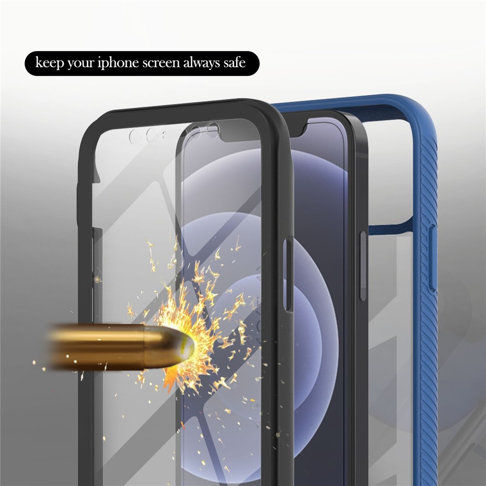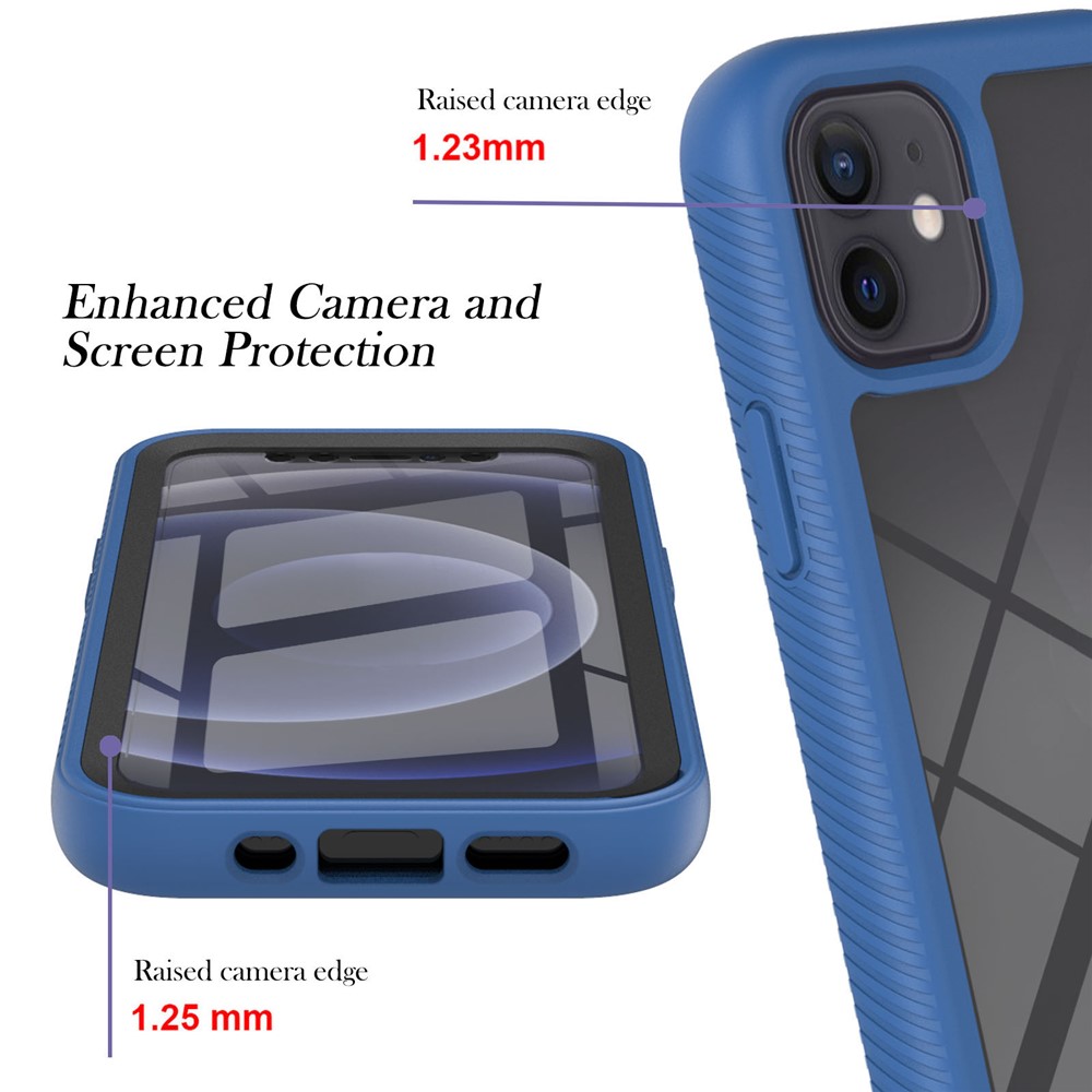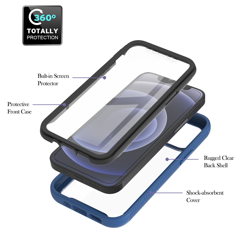 With front shell built-in PET screen protector prevents your phone display from damage without interfering with touch sensitivity. Rugged clear back PC shell with impact resistant TPU bumper, can not only protect your phone full corner from accidental drops but also maintain the durability.