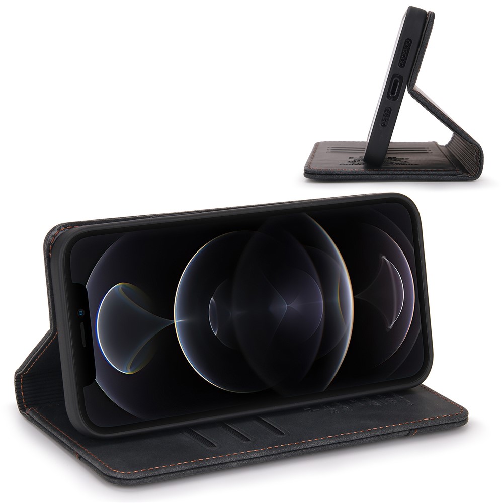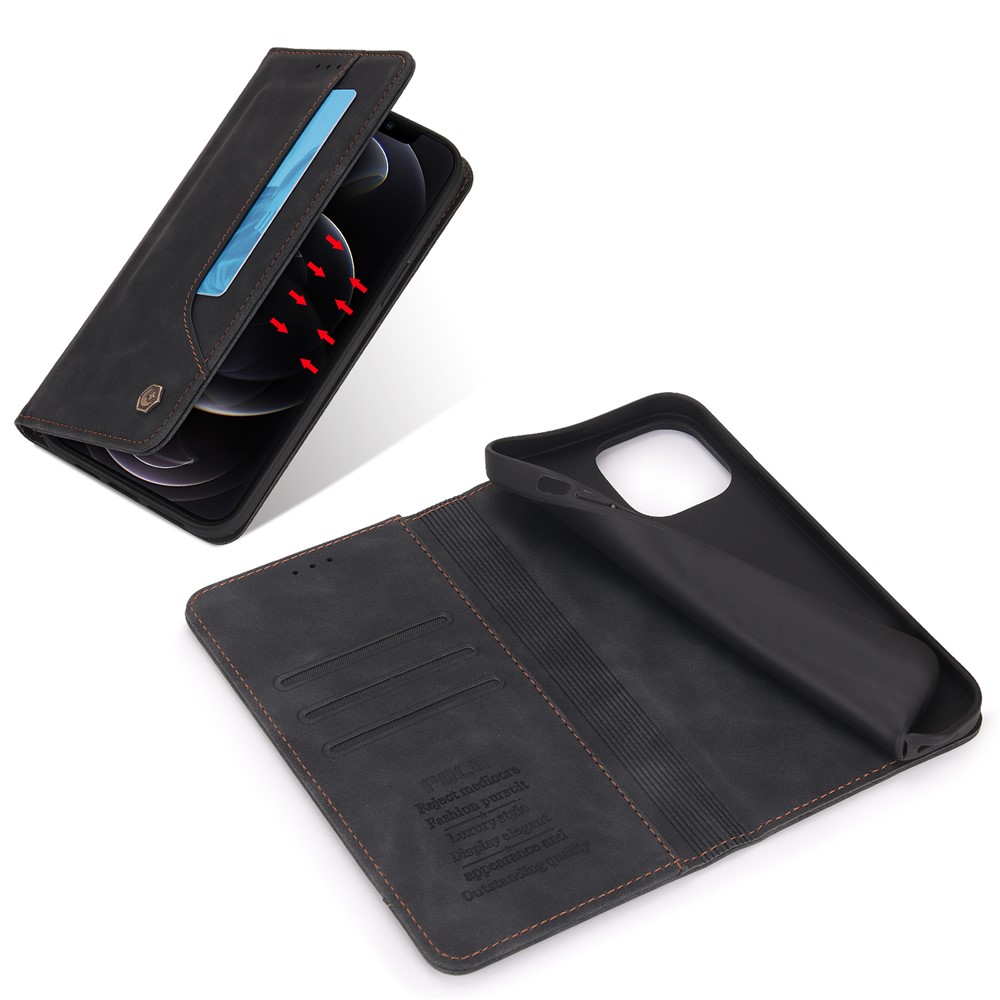 POLA 008 Series Vintage PU Leather Flip Wallet Case Auto Closing Magnetic Shockproof Protective Phone Cover with Stand for iPhone 11 Pro Max 6.5 inch – Black