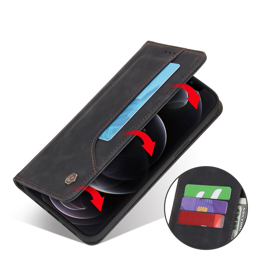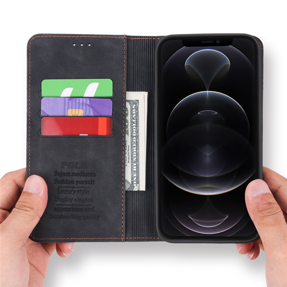POLA 008 Series Vintage PU Leather Flip Wallet Case Auto Closing Magnetic Shockproof Protective Phone Cover with Stand for iPhone 11 Pro Max 6.5 inch - Black $17.34
