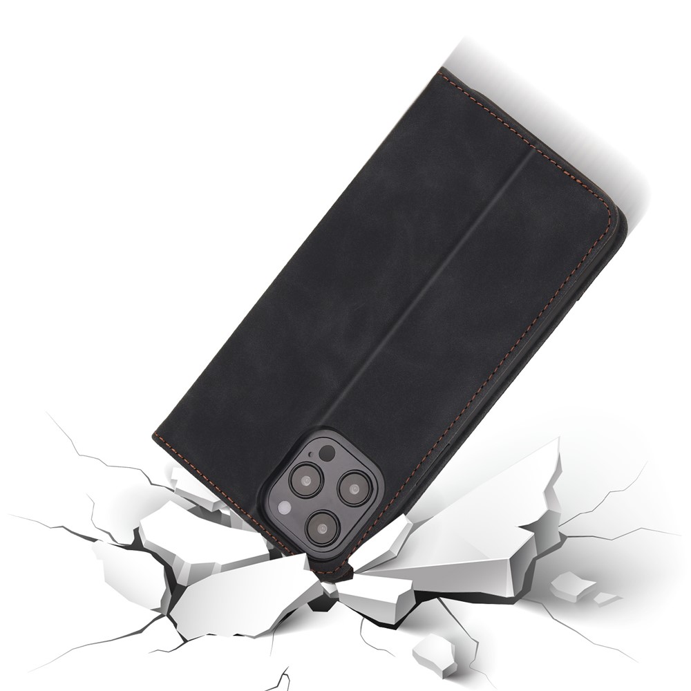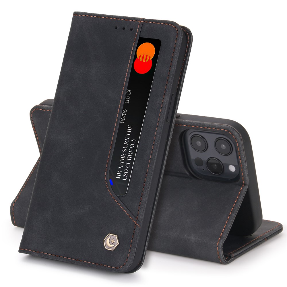 POLA 008 Series Vintage PU Leather Flip Wallet Case Auto Closing Magnetic Shockproof Protective Phone Cover with Stand for iPhone 11 Pro Max 6.5 inch - Black