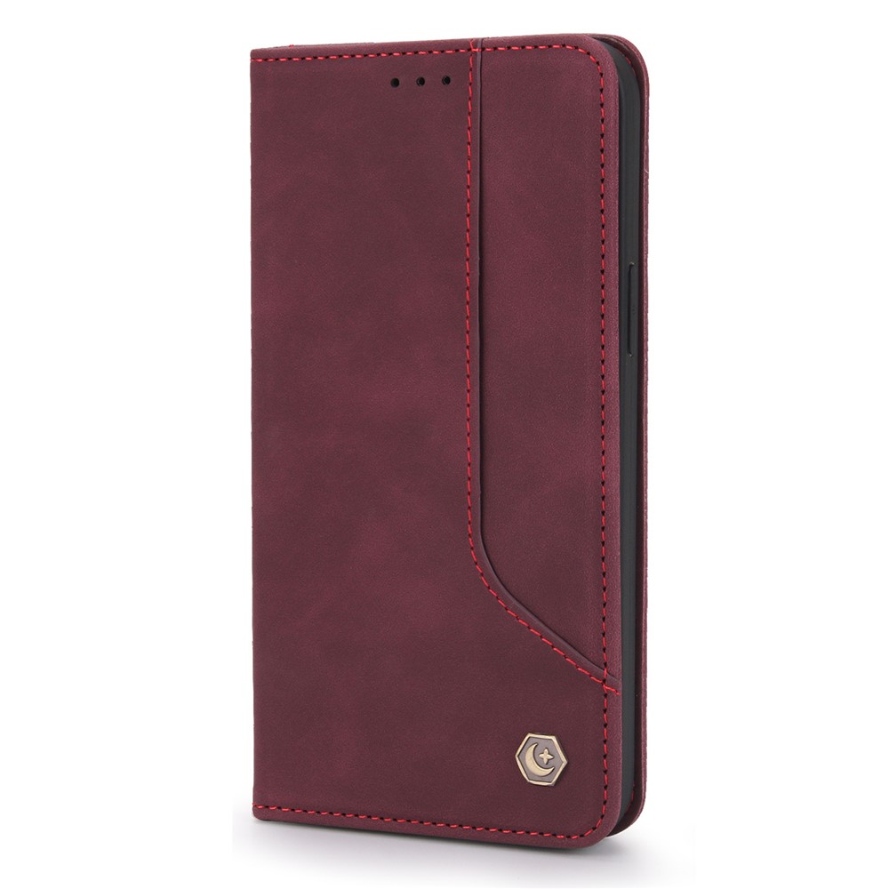 POLA 008 Series Vintage PU Leather Flip Wallet Case Auto Closing Magnetic Shockproof Protective Phone Cover with Stand for iPhone 11 Pro Max 6.5 inch - Wine Red