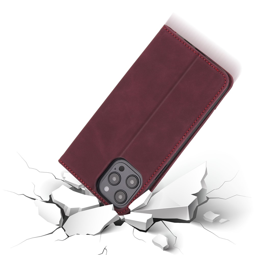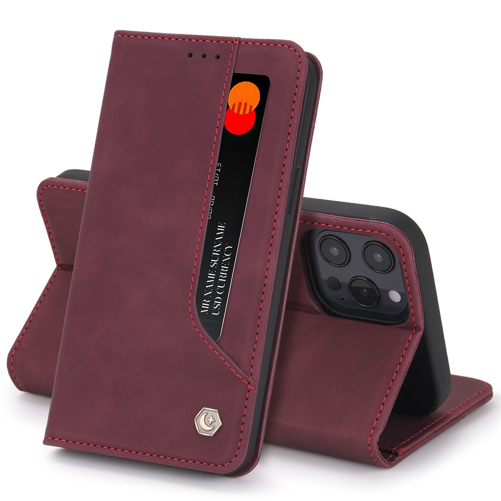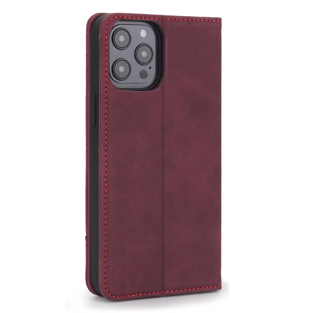 POLA 008 Series Vintage PU Leather Flip Wallet Case Auto Closing Magnetic Shockproof Protective Phone Cover with Stand for iPhone 11 Pro Max 6.5 inch – Wine Red