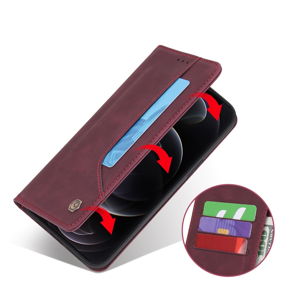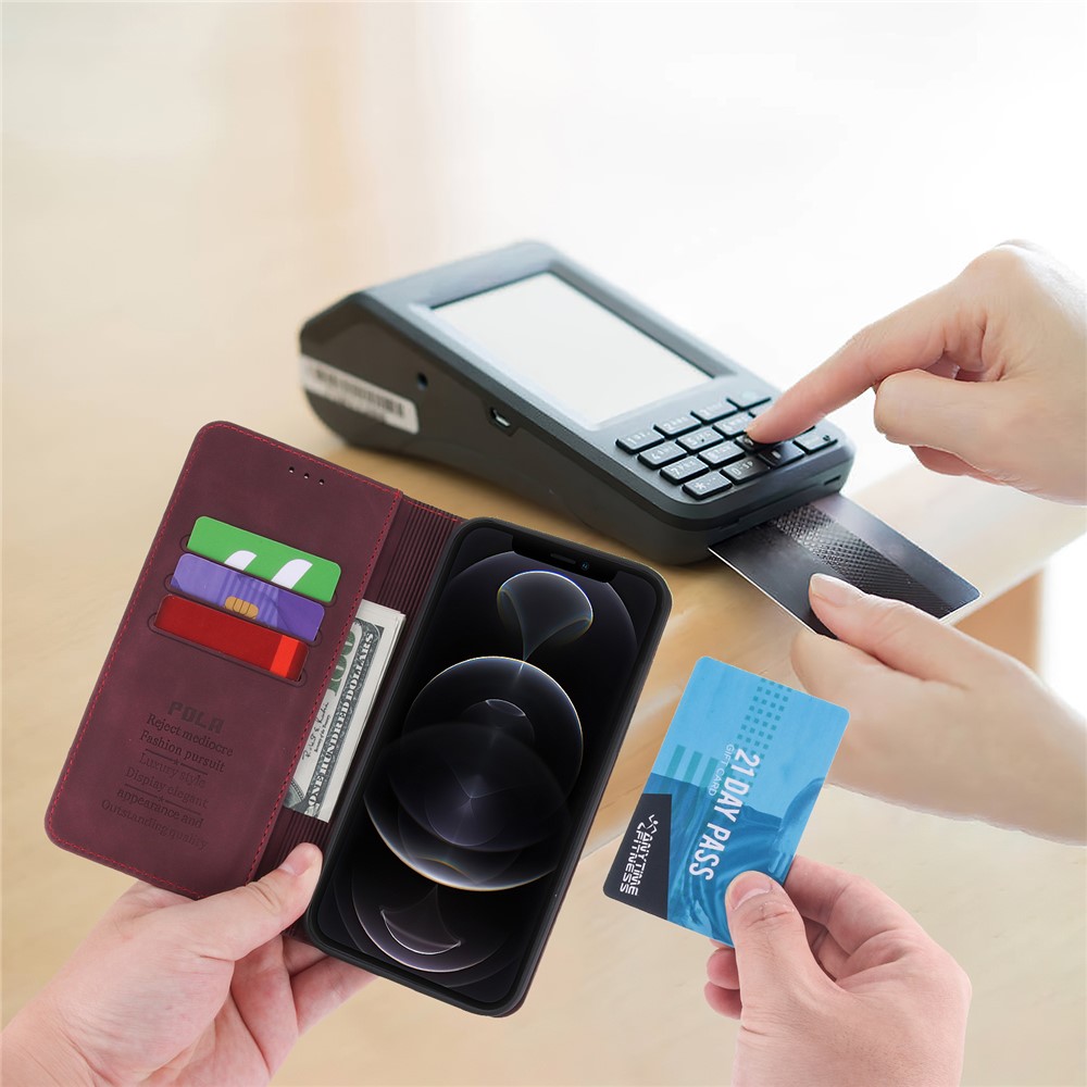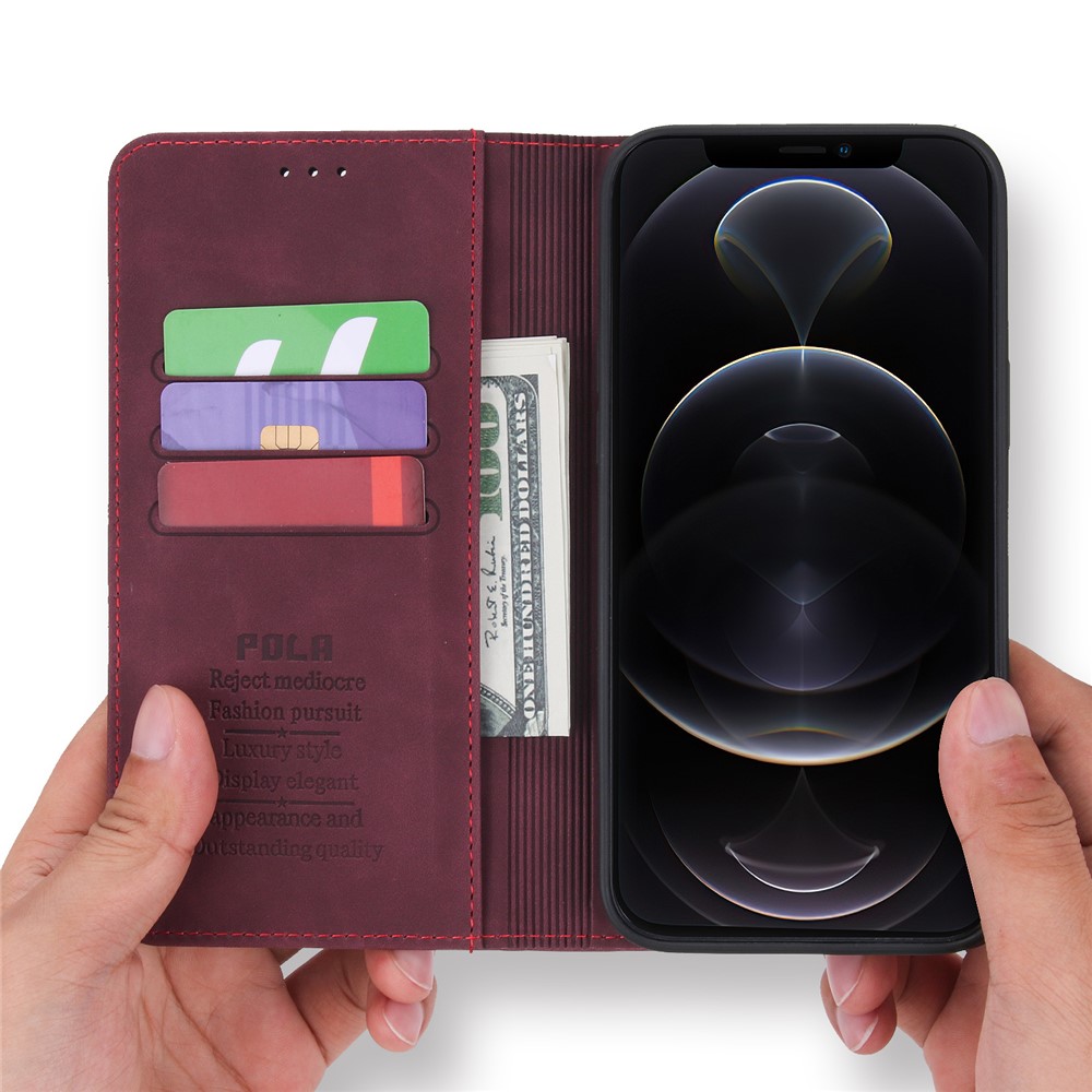 POLA 008 Series Vintage PU Leather Flip Wallet Case Auto Closing Magnetic Shockproof Protective Phone Cover with Stand for iPhone 11 Pro Max 6.5 inch - Wine Red $17.34