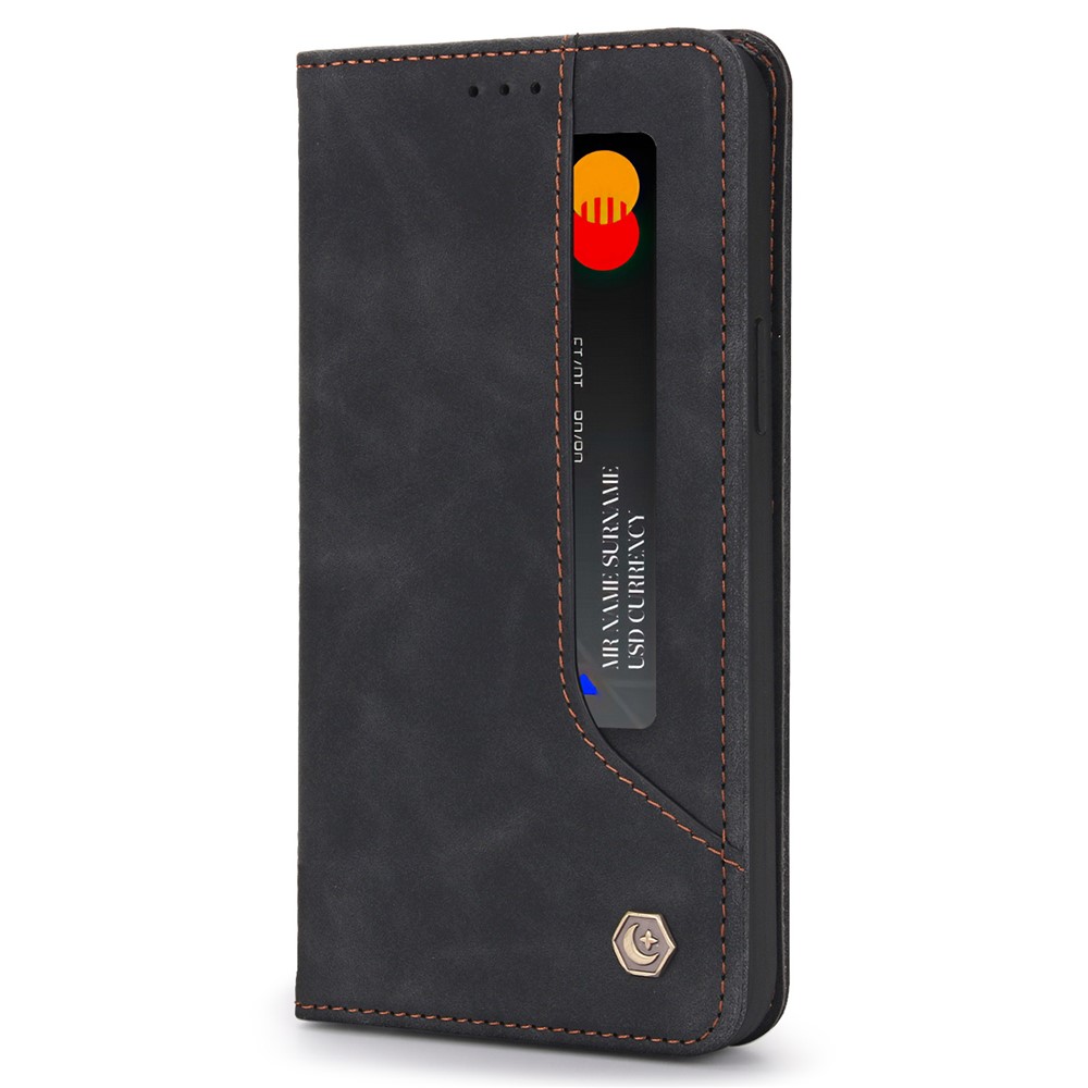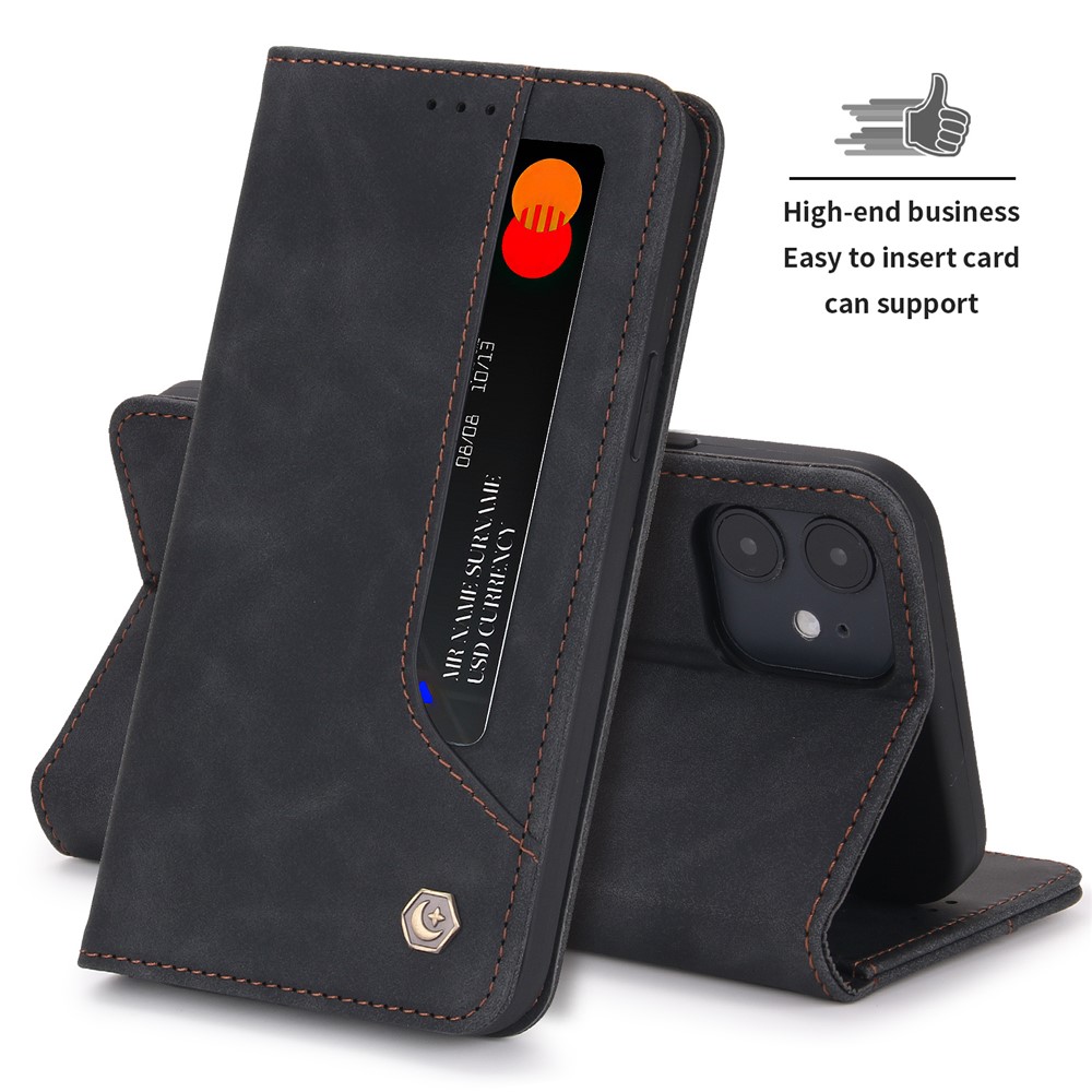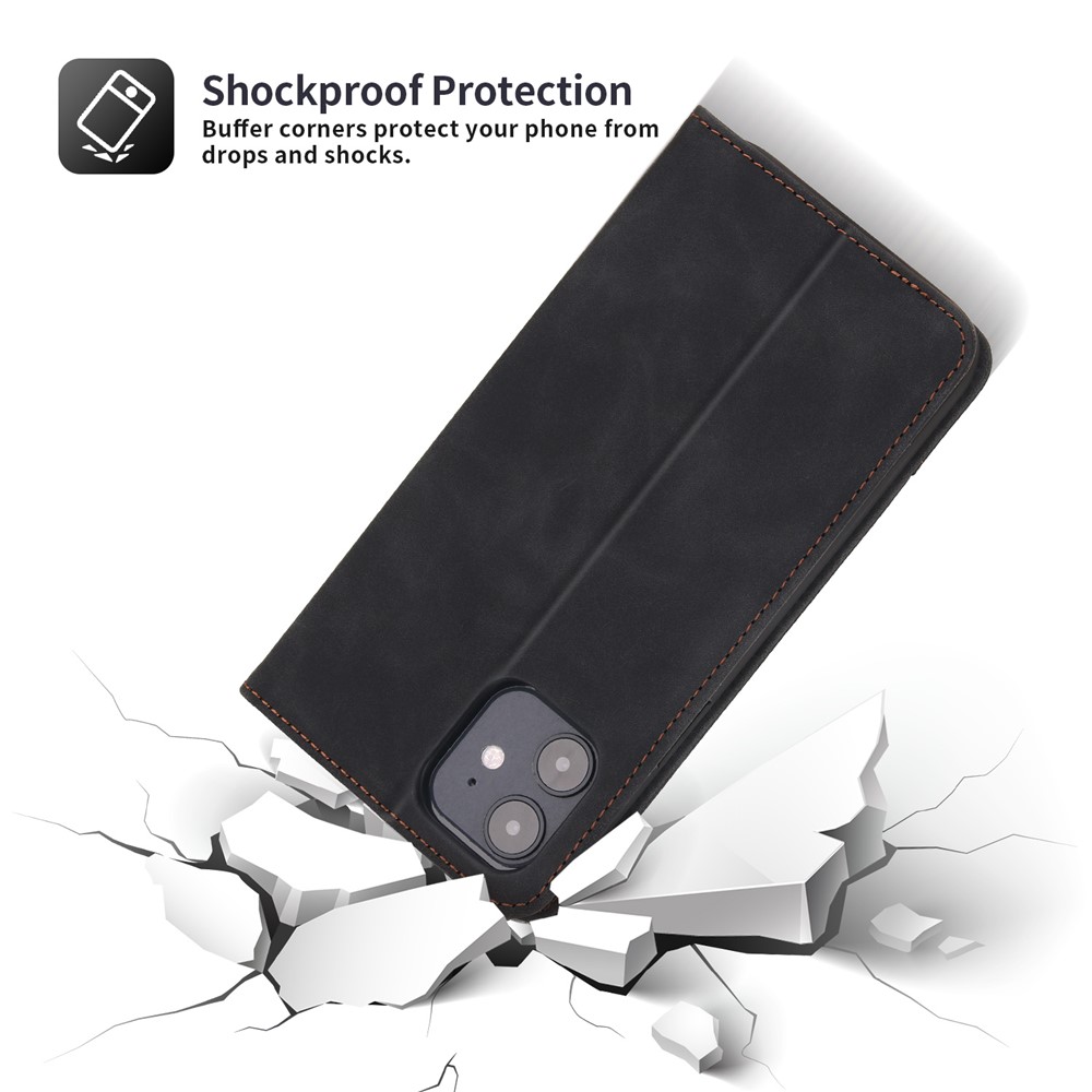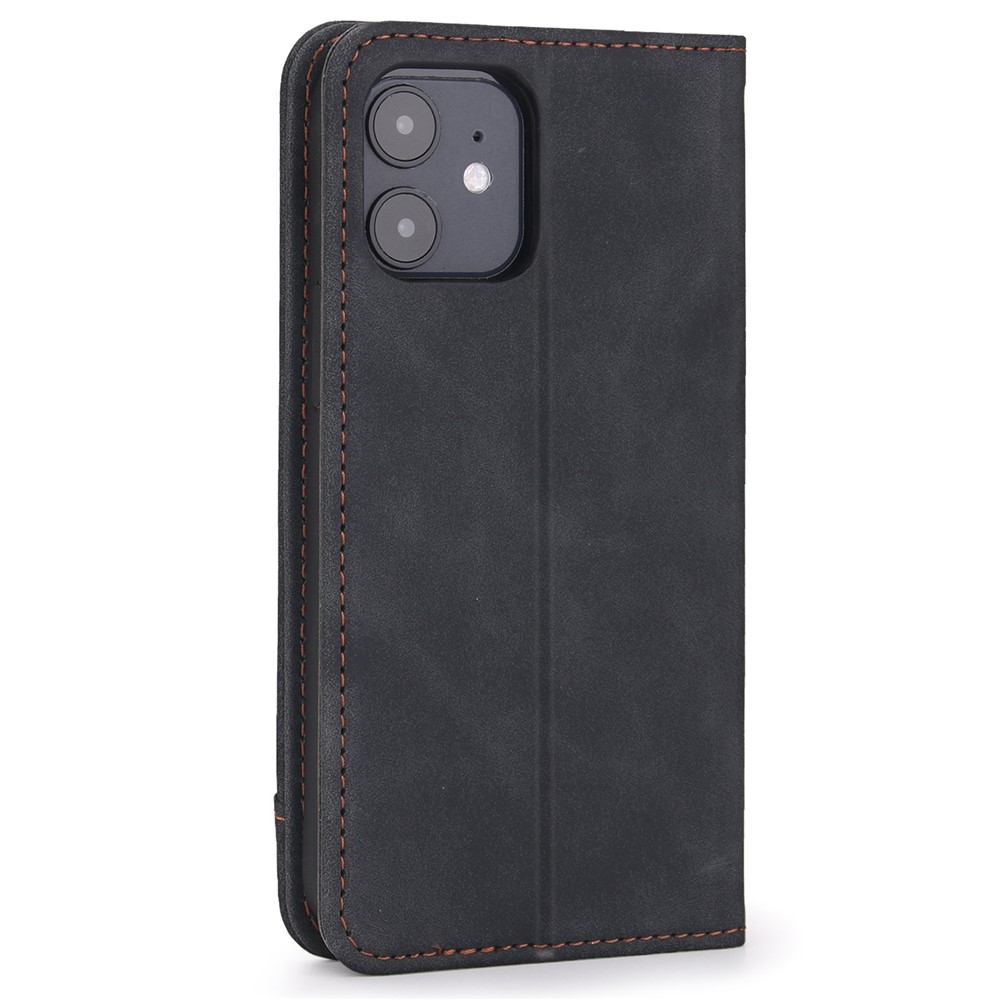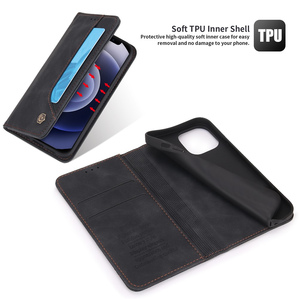POLA 008 Series Wallet Design PU Leather Retro Folio Flip Case Stand Magnetic Auto-absorbed Shockproof Protection Cover for iPhone 12 mini 5.4 inch - Black