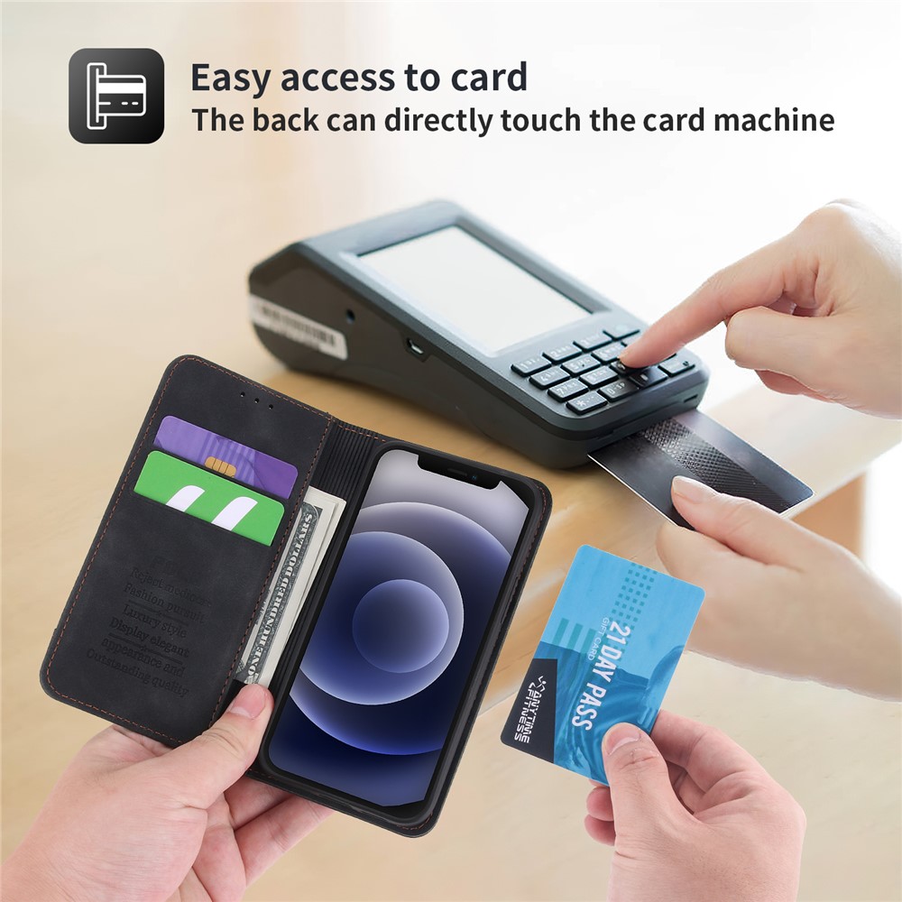 The outer cover is made of quality PU leather+TPU,  which can protect your phone from scratches, drops and impacts. The flexible TPU inner case is soft enough for easily twisted and perfect fit installation. Strong magnet for automatic closing, it is safe and convenient to manage your valuable items inside.