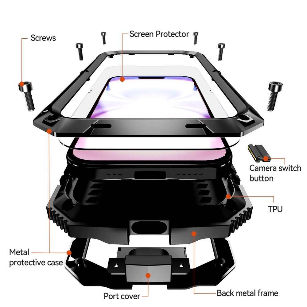- Built-In Screen Protector for Full Coverage Includes a front metal case with an integrated screen protector, offering comprehensive protection for your phone’s display