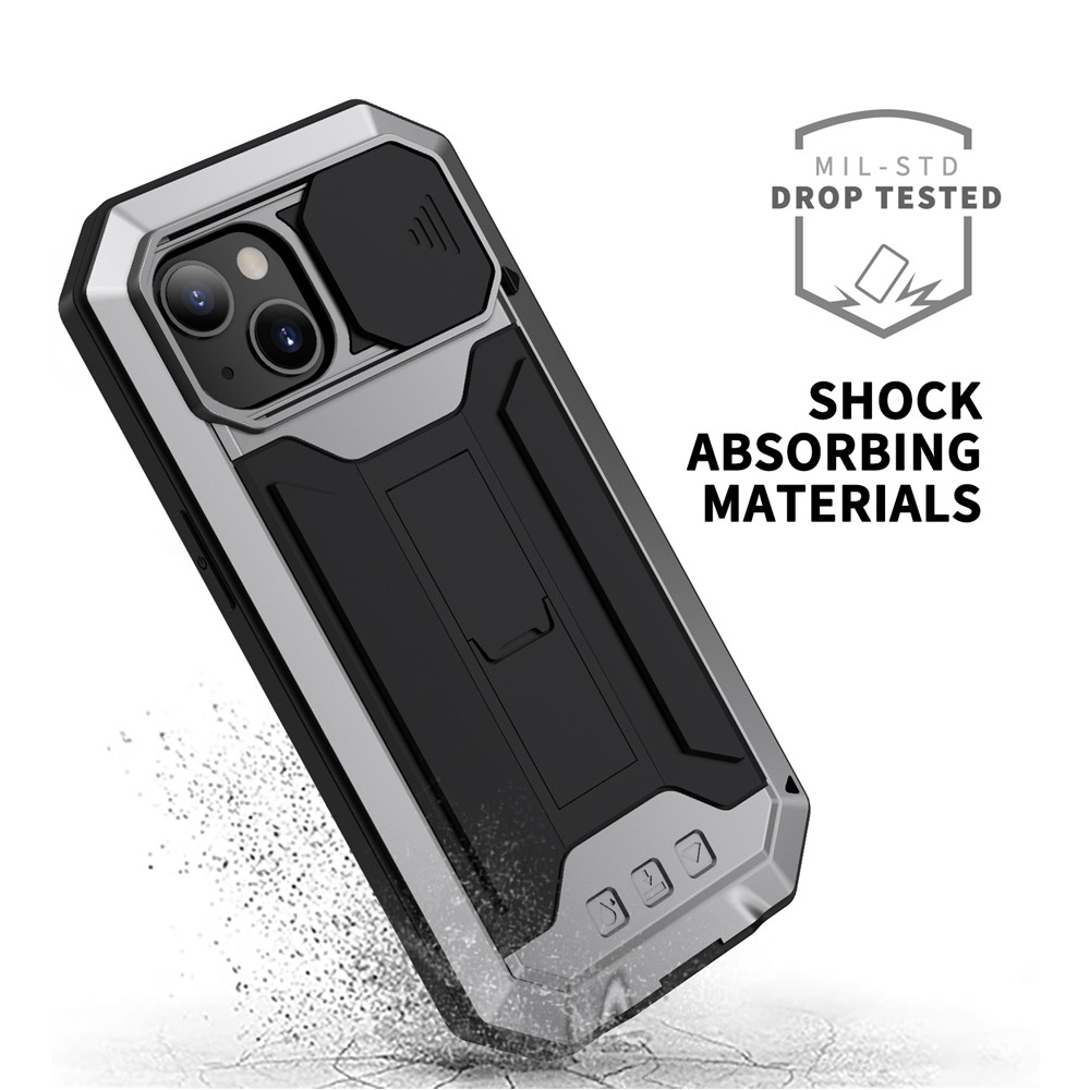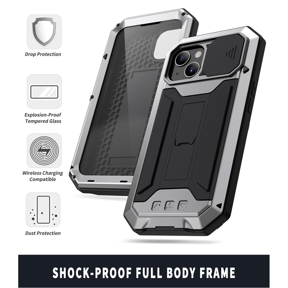 This phone case has a combination of softness and hardness: metal bumper frame and back cover + tempered glass screen protector + soft silicone inner layer + PC camera slider. Featuring drop-resistant, anti-dust and daily waterproof, this case possesses triple protections. Passed military-grade drop test, the phone case characterized with drop and shock absorption, no worrying about the phone being damaged.