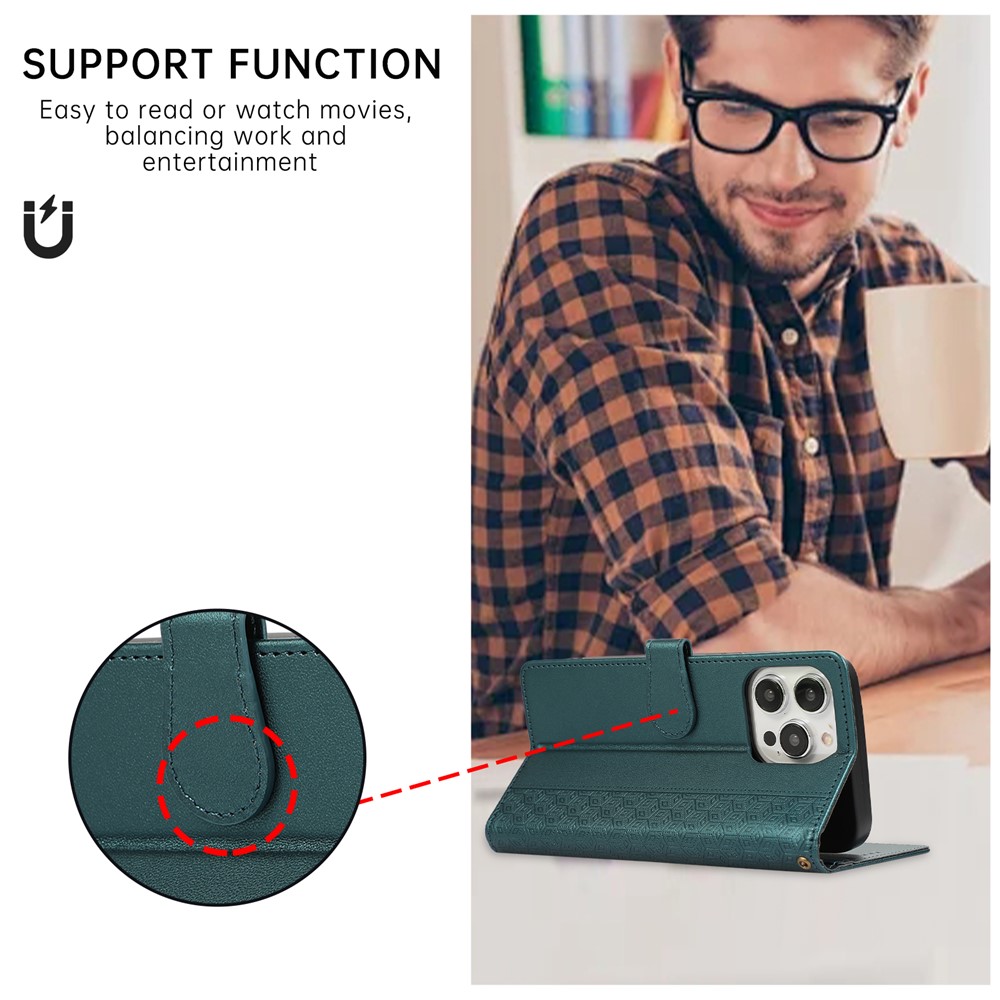 - Stylish Rhombus Design & Premium Material Features a splicing imprinted rhombus pattern, crafted from high-quality PU leather and durable TPU, combining elegance with long-lasting durability.