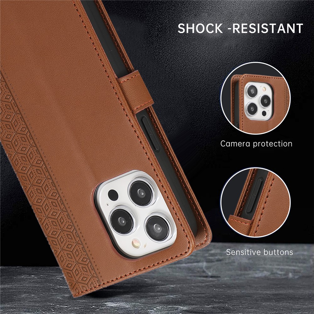- Stylish Rhombus Design & Premium Material Features a splicing imprinted rhombus pattern, crafted from high-quality PU leather and durable TPU, combining elegance with long-lasting durability.