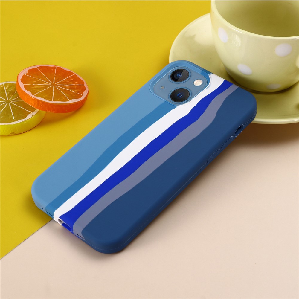 Rainbow Style Liquid Silicone Drop-proof Mobile Phone Back Case Cover for iPhone 13 mini 5.4 inch – Blue