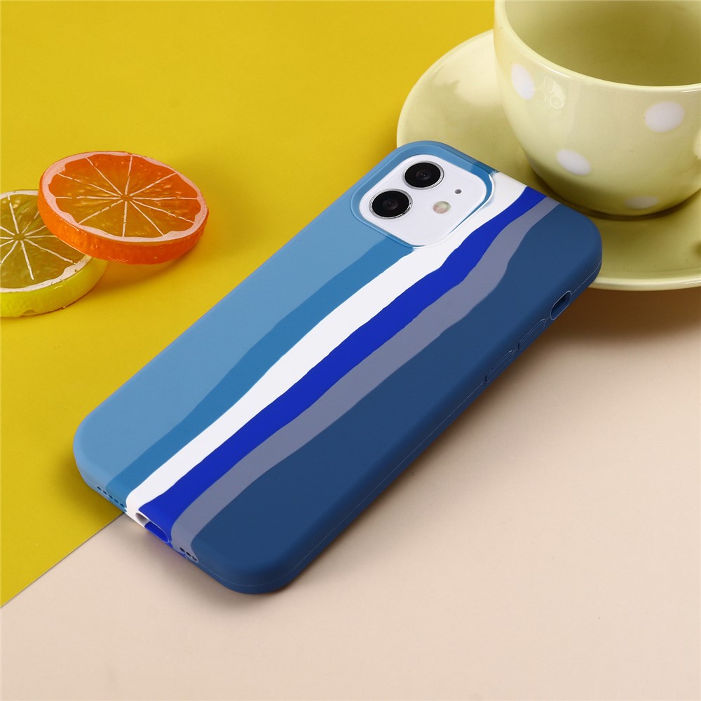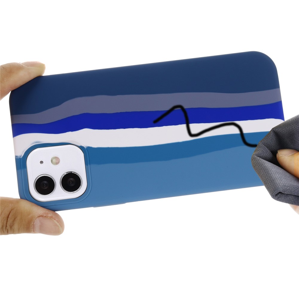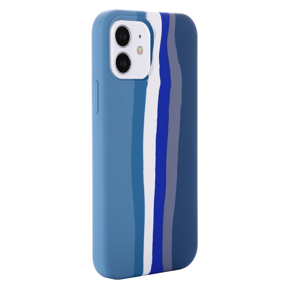 Rainbow Style Liquid Silicone Phone Back Cover Shell for iPhone 12 mini 5.4 inch – Blue