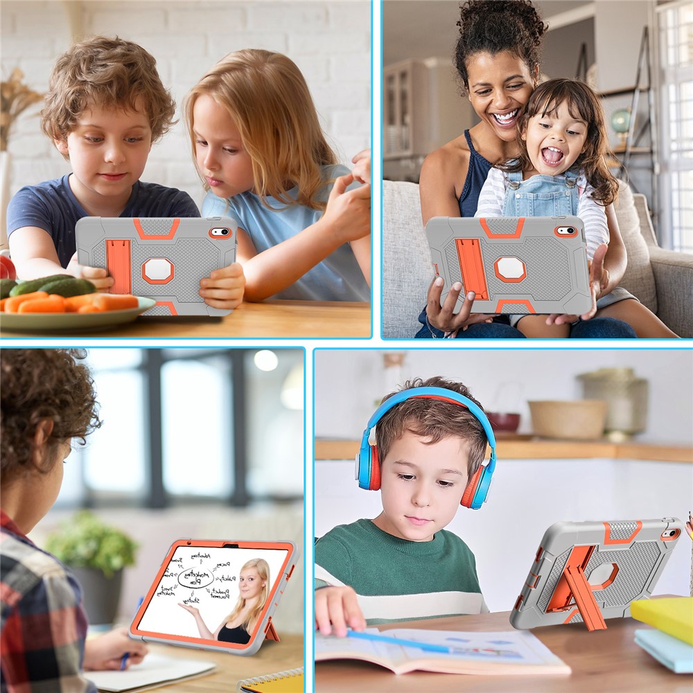 Impact-resistant design and shock absorbing silicone + plastic materials fully cover the back and edges, protecting against accidental drops and falls. The convenient but sturdy kickstand free your hands when you’re reading, watching and surfing the internet in your free time.