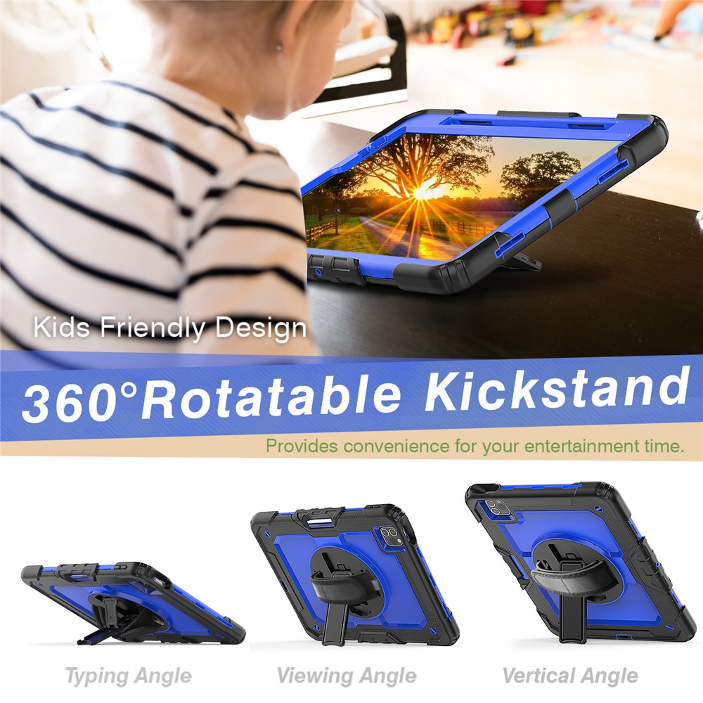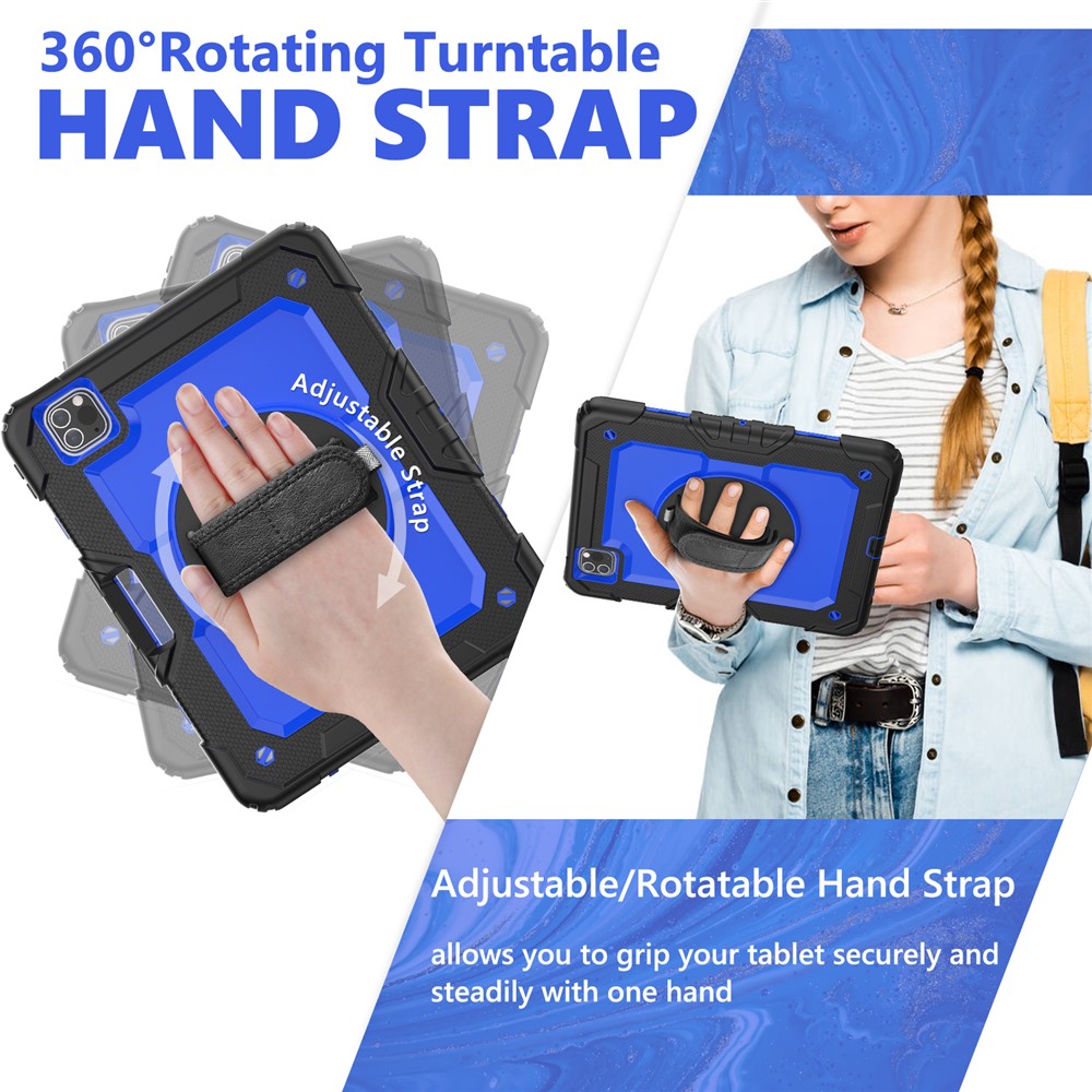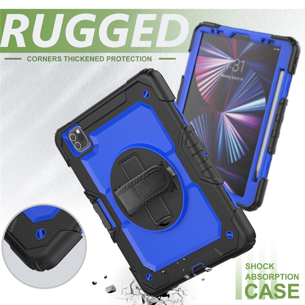• Rugged Heavy Duty PC + Silicone Shockproof 360° Rotating Kickstand Cover with Handle Hand Grip and Shoulder Strap for iPad Pro 11-inch (2021) / (2022) - Blue / Black