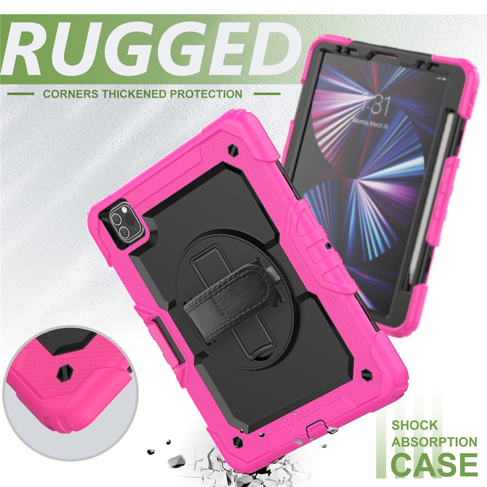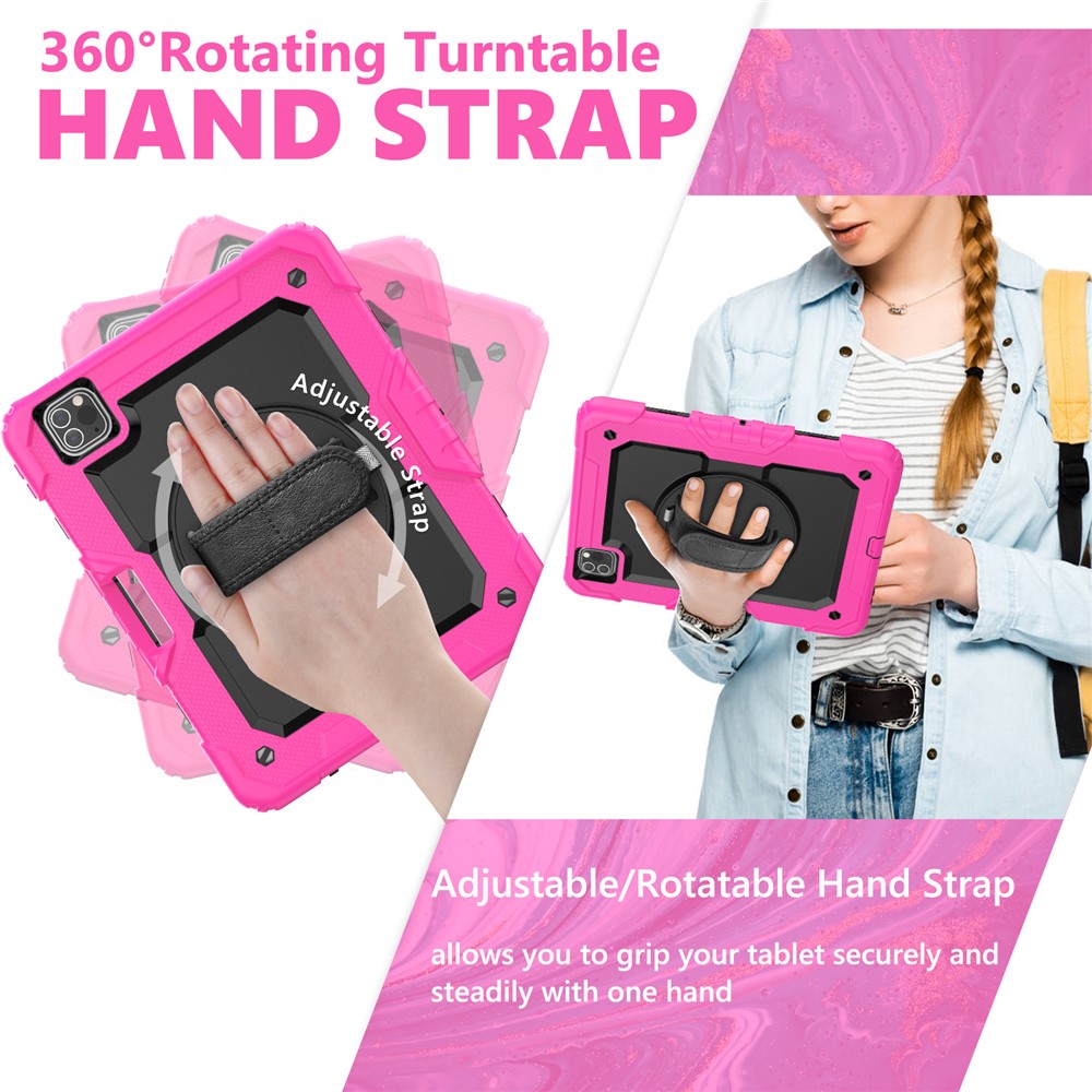 Rugged Heavy Duty PC + Silicone Shockproof 360° Rotating Kickstand Cover with Handle Hand Grip and Shoulder Strap for iPad Pro 11-inch (2021) / (2022) - Rose / Black $38.01