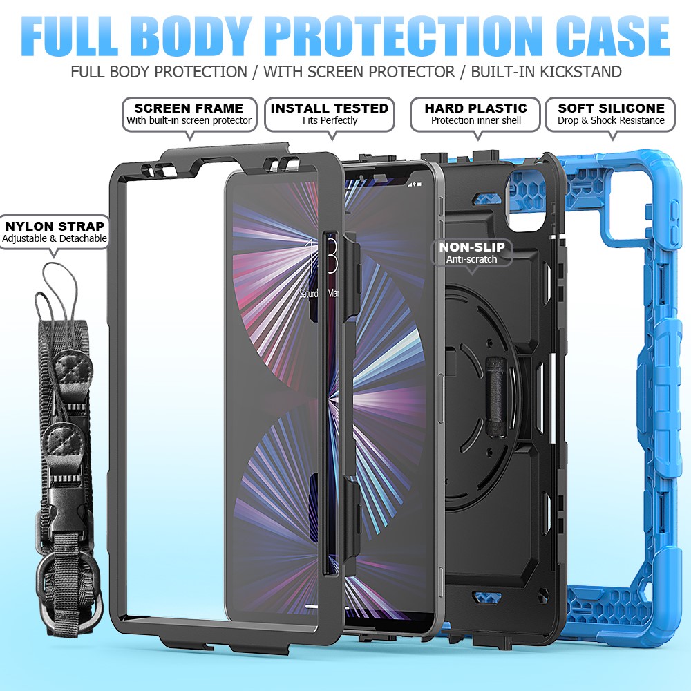 Impact resistant design and shock absorbing silicone + plastic inner shell + PC screen frame with protector, 360 degree protecting against accidental drops and falls.