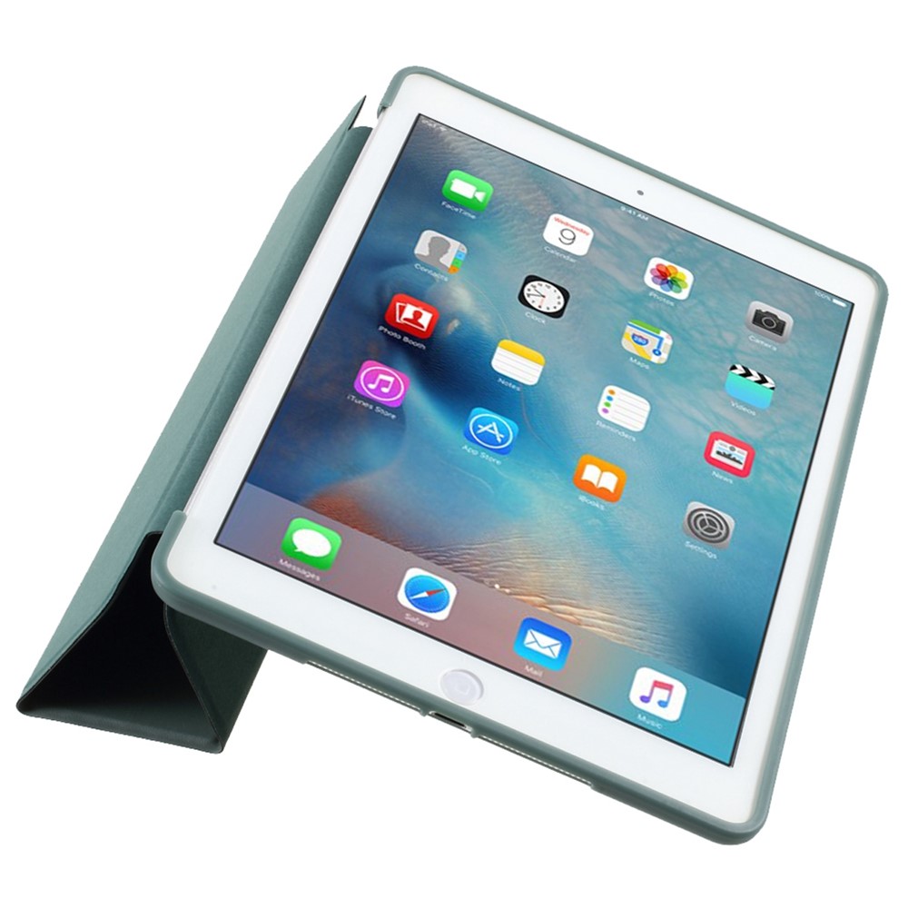 Scratch-Resistant PU Leather + Soft Silicone Back Shell Tri-fold Stand Cover for iPad 9.7-inch (2018)/(2017) – Dark Green