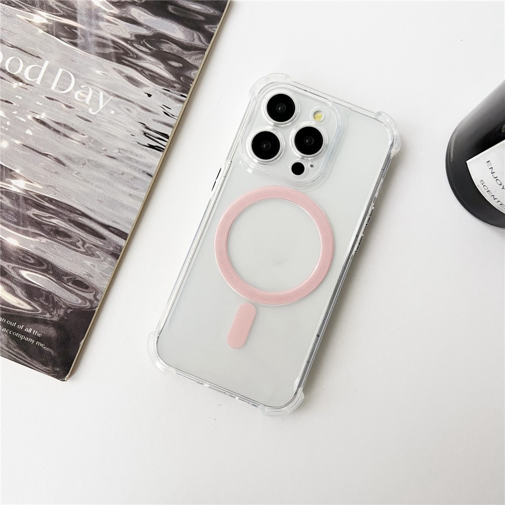 SHANWO For iPhone 15 Pro Max Magnetic Case Anti Drop Soft TPU Clear Phone Back Cover – Pink