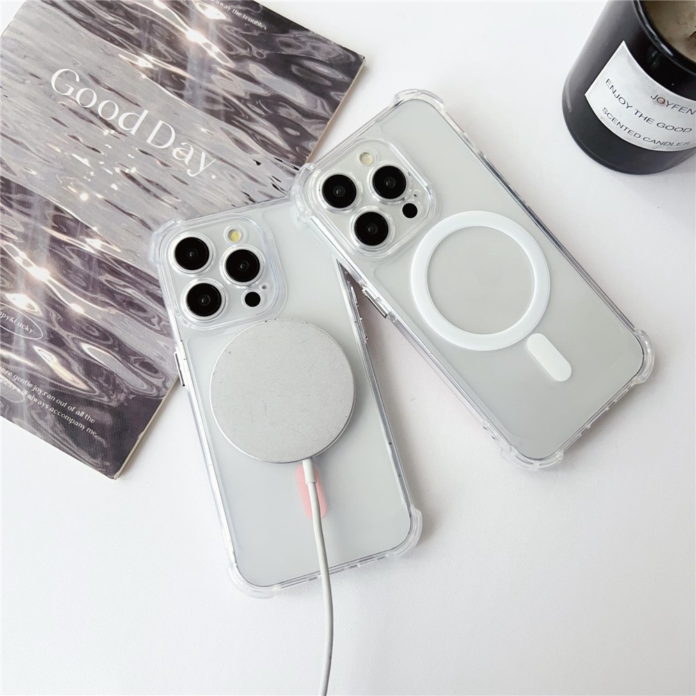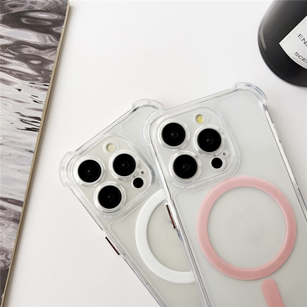 • SHANWO For iPhone 15 Pro Max Magnetic Case Anti Drop Soft TPU Clear Phone Back Cover - White