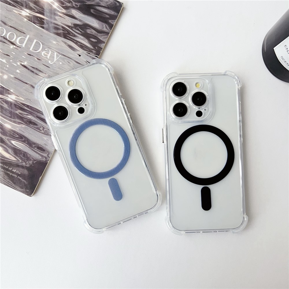 • SHANWO For iPhone 15 Pro Max Magnetic Case Anti Drop Soft TPU Clear Phone Back Cover - Blue