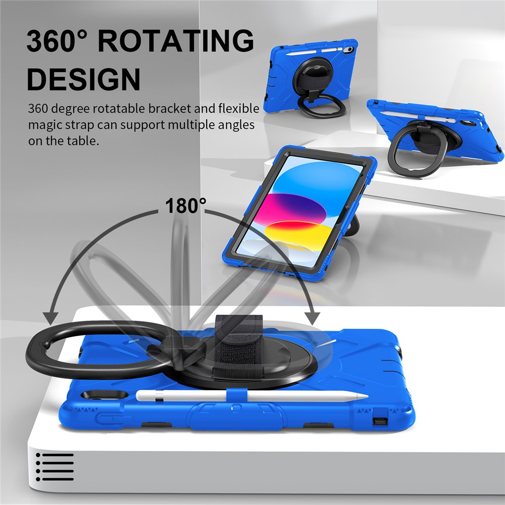 - 180-degree and 360-degree rotary kickstand supports multi angles adjustment, and can be used a hand grip for convenient carrying