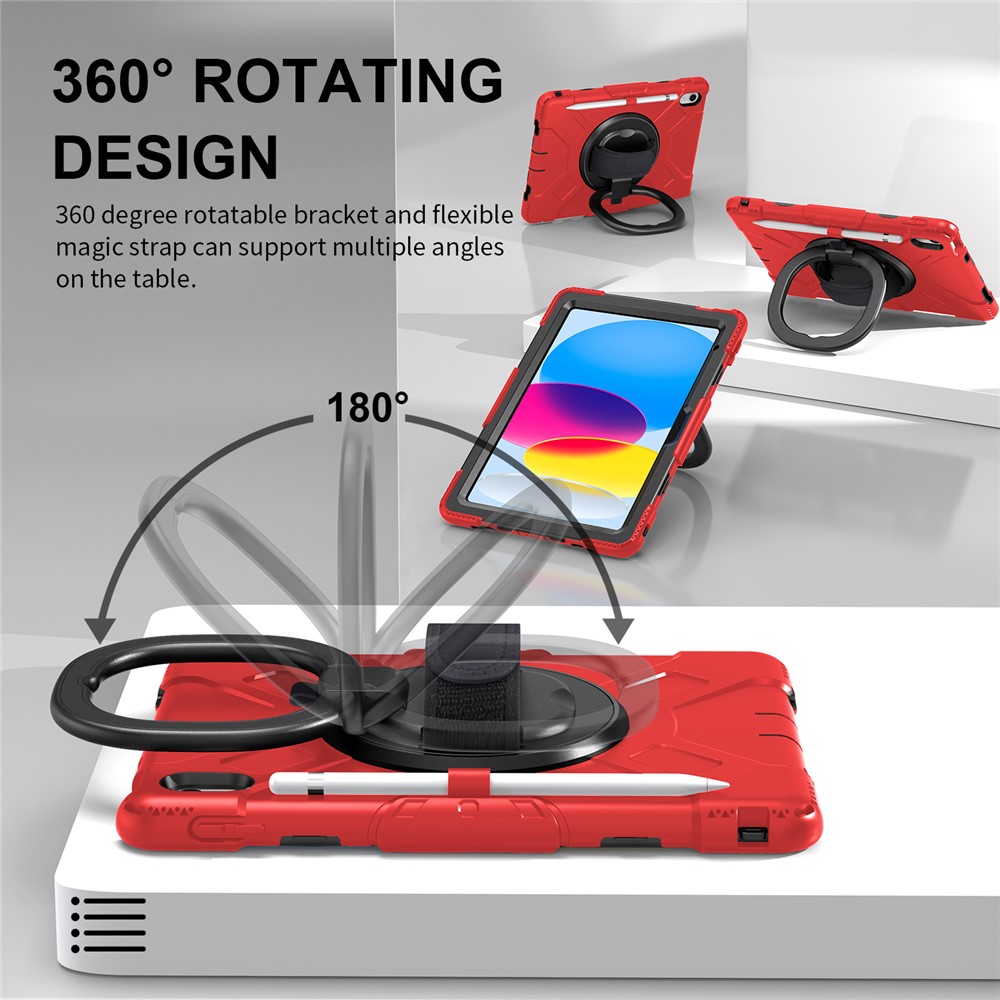 - 180-degree and 360-degree rotary kickstand supports multi angles adjustment, and can be used a hand grip for convenient carrying
