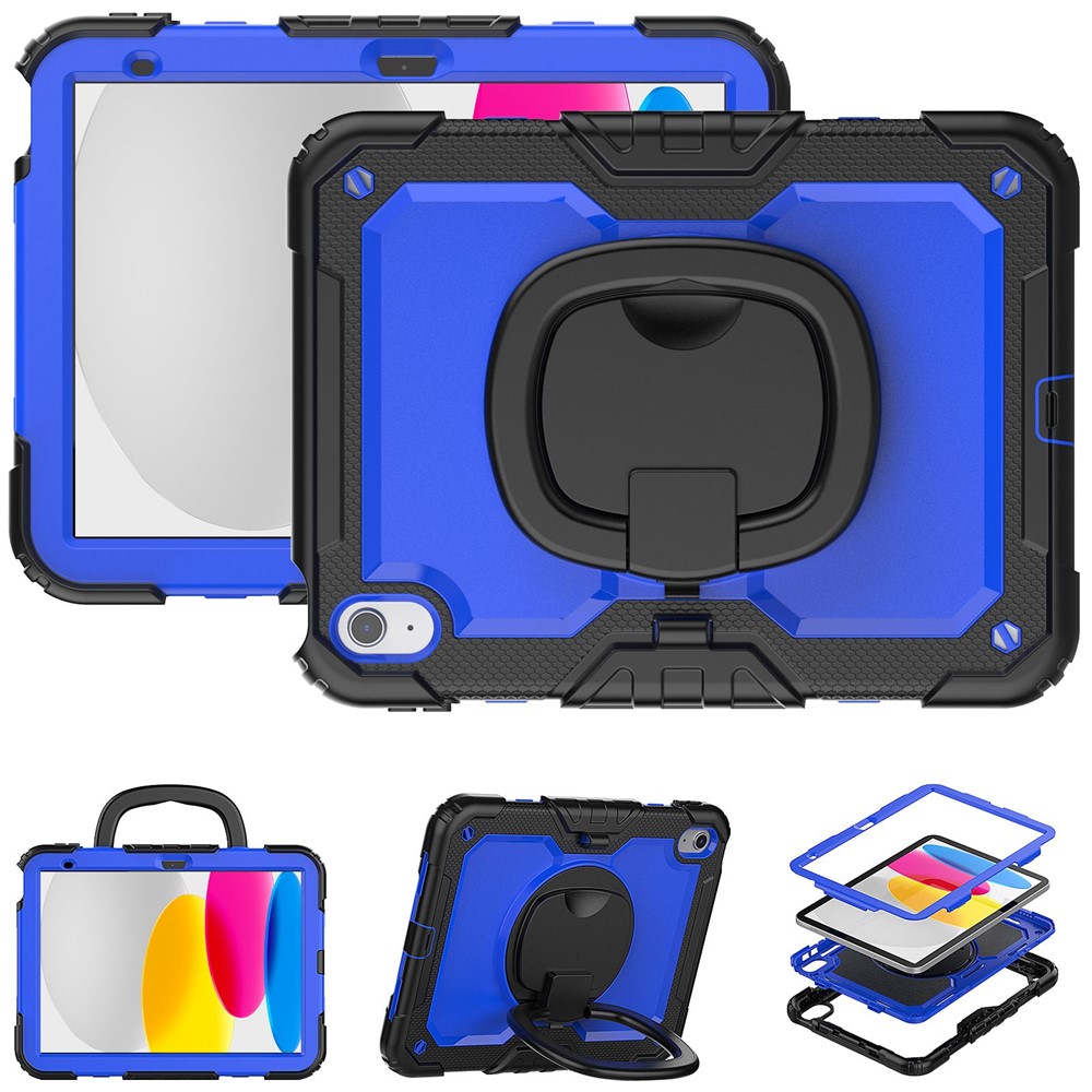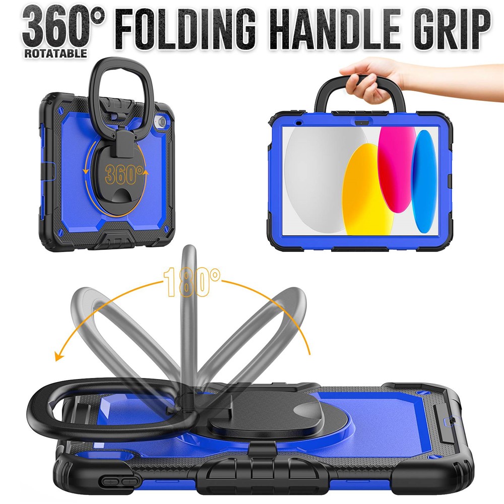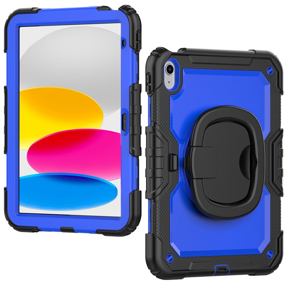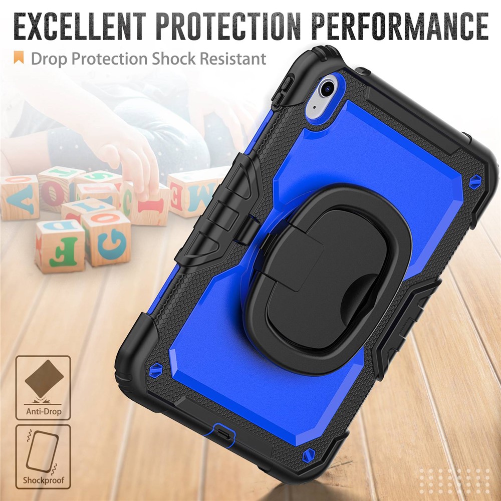 • Shockproof Drop-Proof Tablet Case for iPad (2025) / 10.9 (2022) PC + Thickened Silicone Kickstand Cover with Hand Grip - Blue Silicone