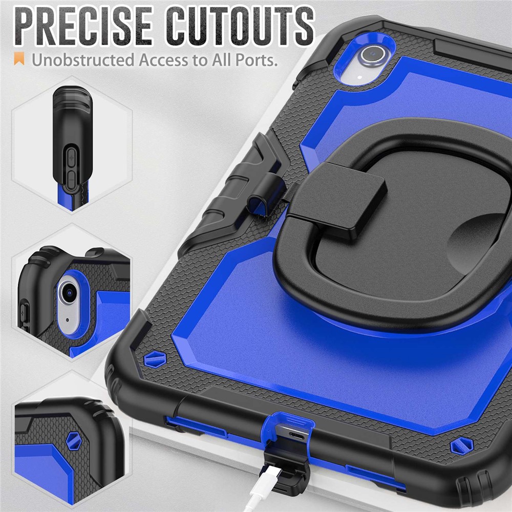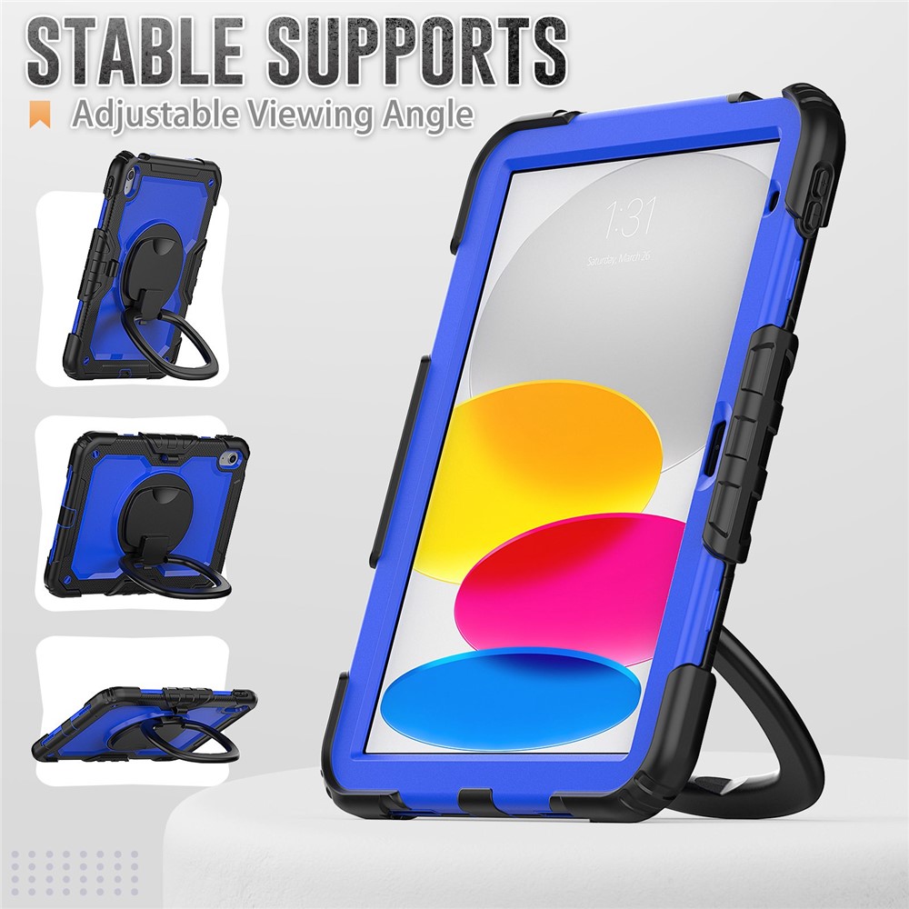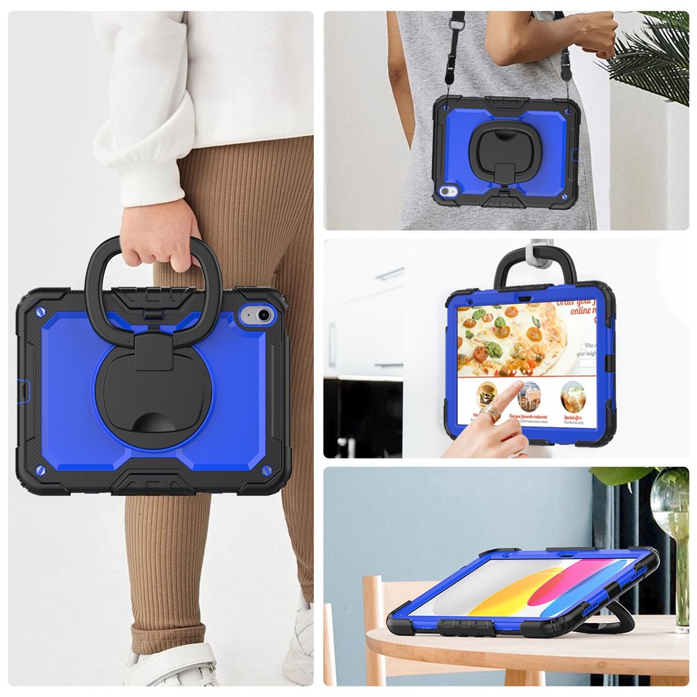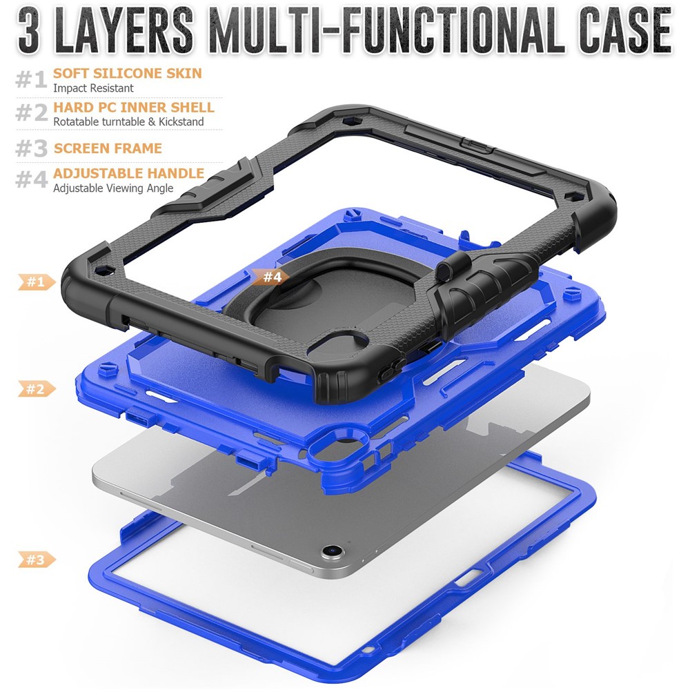 • Shockproof Drop-Proof Tablet Case for iPad (2025) / 10.9 (2022) PC + Thickened Silicone Kickstand Cover with Hand Grip - Blue Silicone