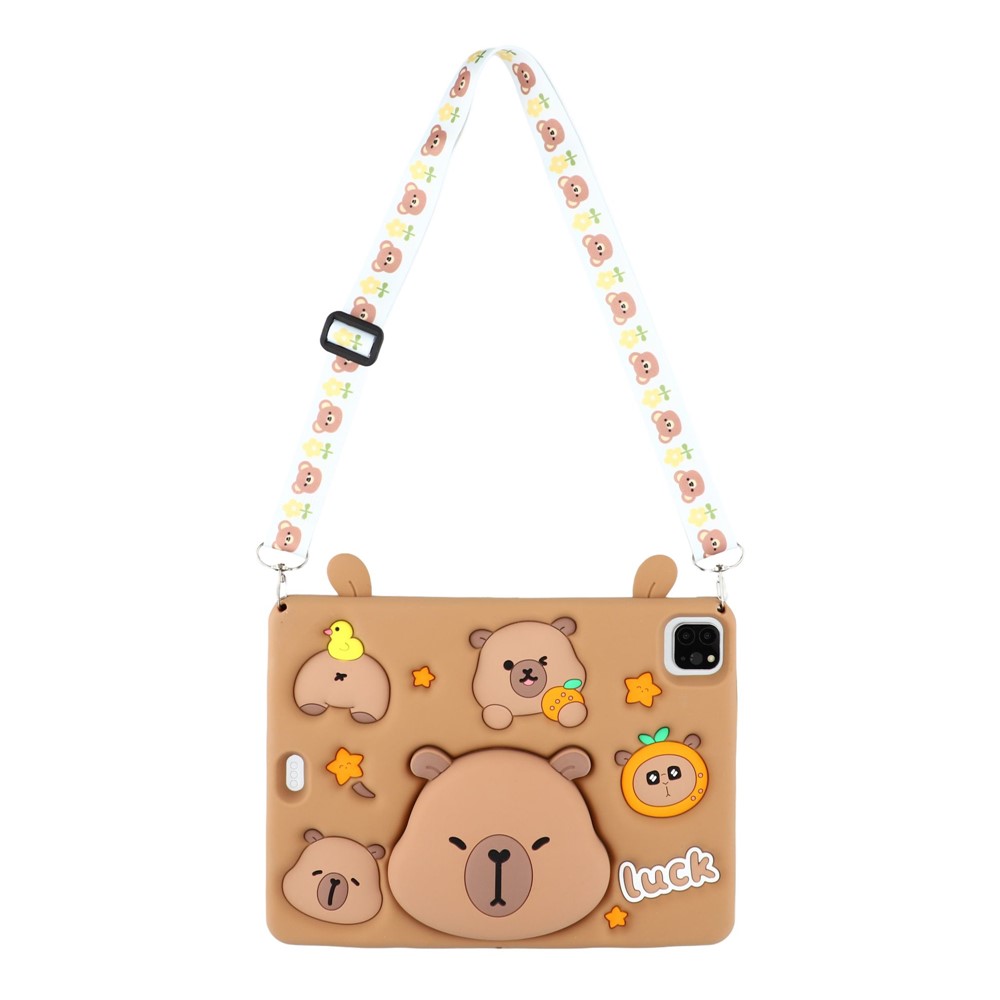 Silicone Case for iPad Air 11 (2025) / (2024) / Air (2022) / (2020) / iPad Pro 11 (2024) / (2022) / (2021) / (2020) / (2018) Tablet Cover with Retractable Bear Kickstand / Shoulder Strap