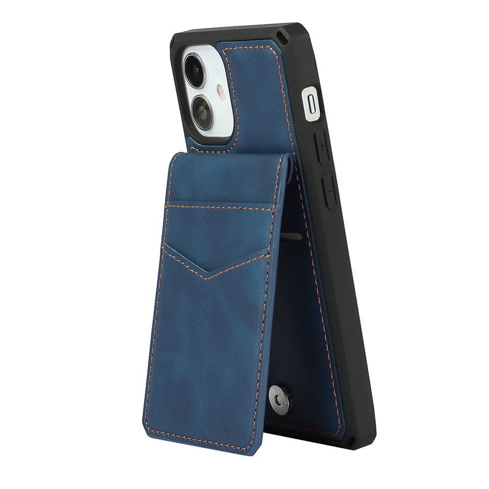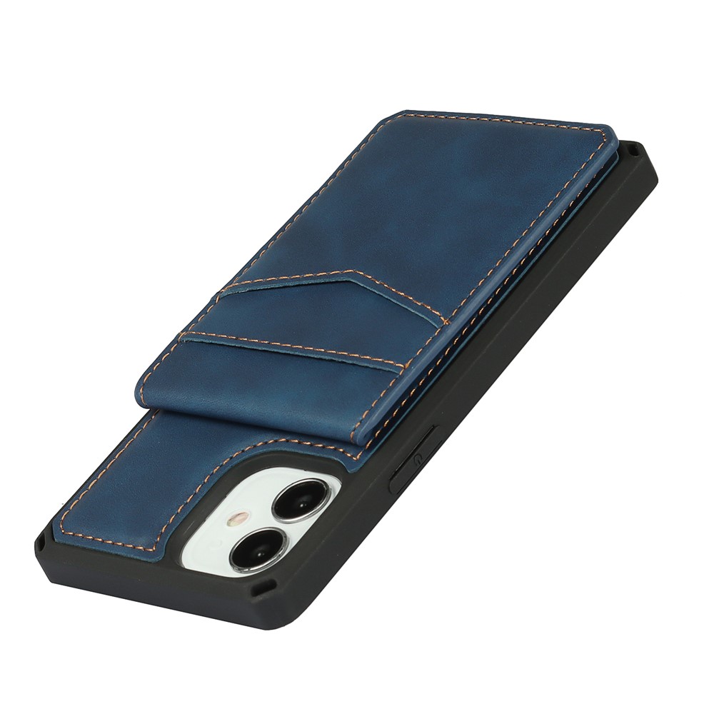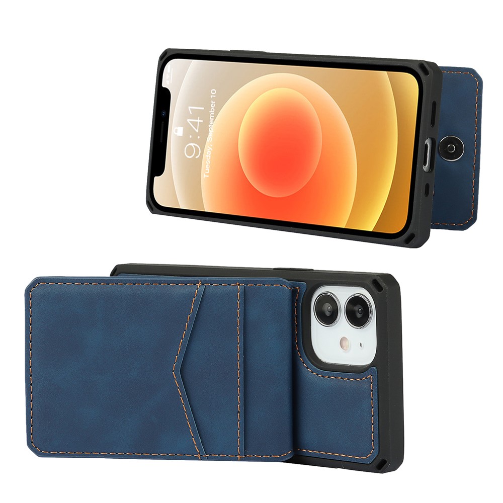 Skin-Touch PU Leather Coated TPU Vertical Flip Phone Case Cover with Kickstand and Card Slots for iPhone 12 mini 5.4 inch – Blue