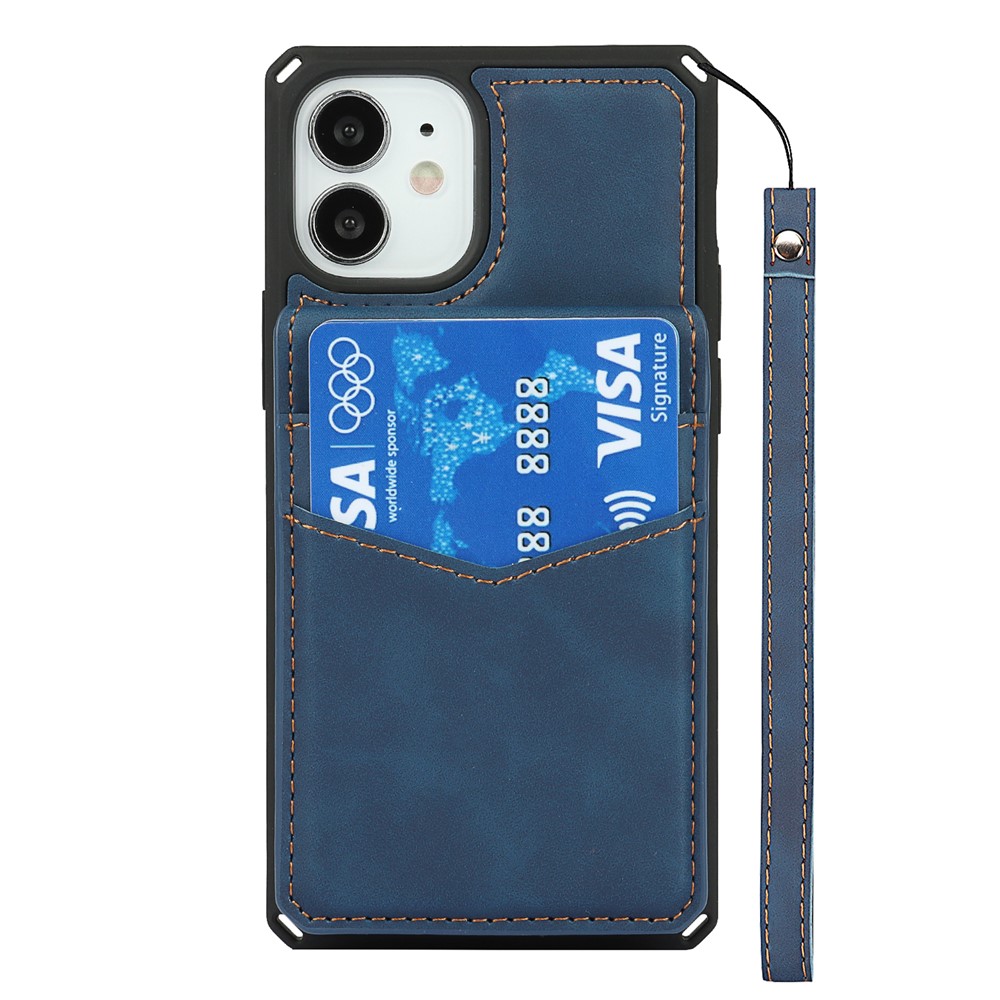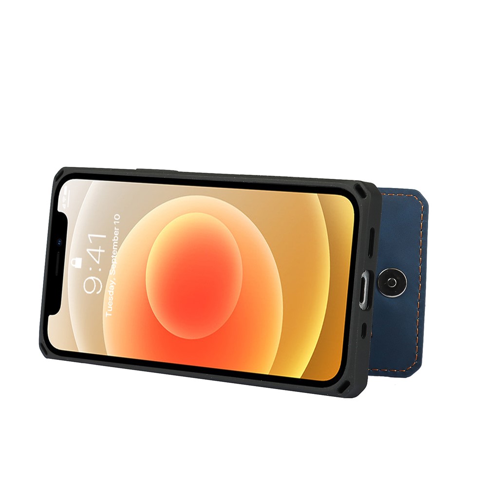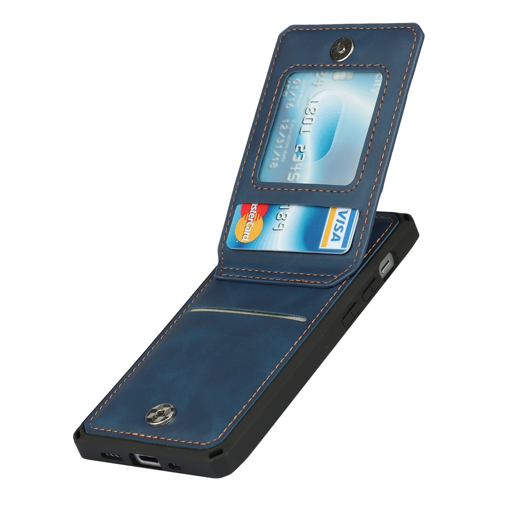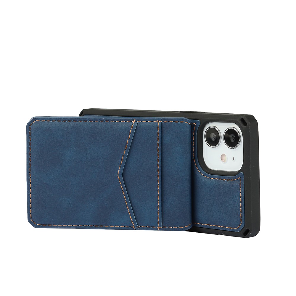 Skin-Touch PU Leather Coated TPU Vertical Flip Phone Case Cover with Kickstand and Card Slots for iPhone 12 mini 5.4 inch – Blue