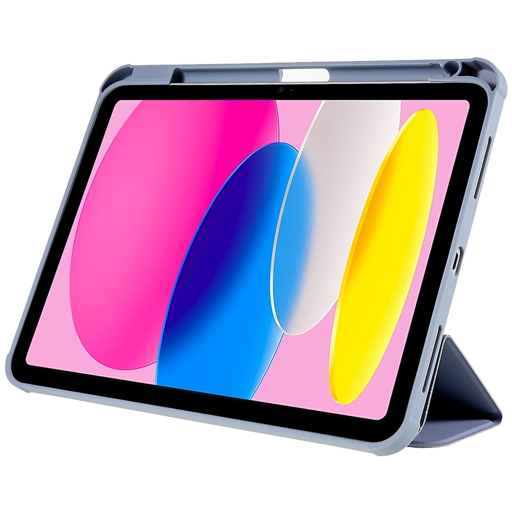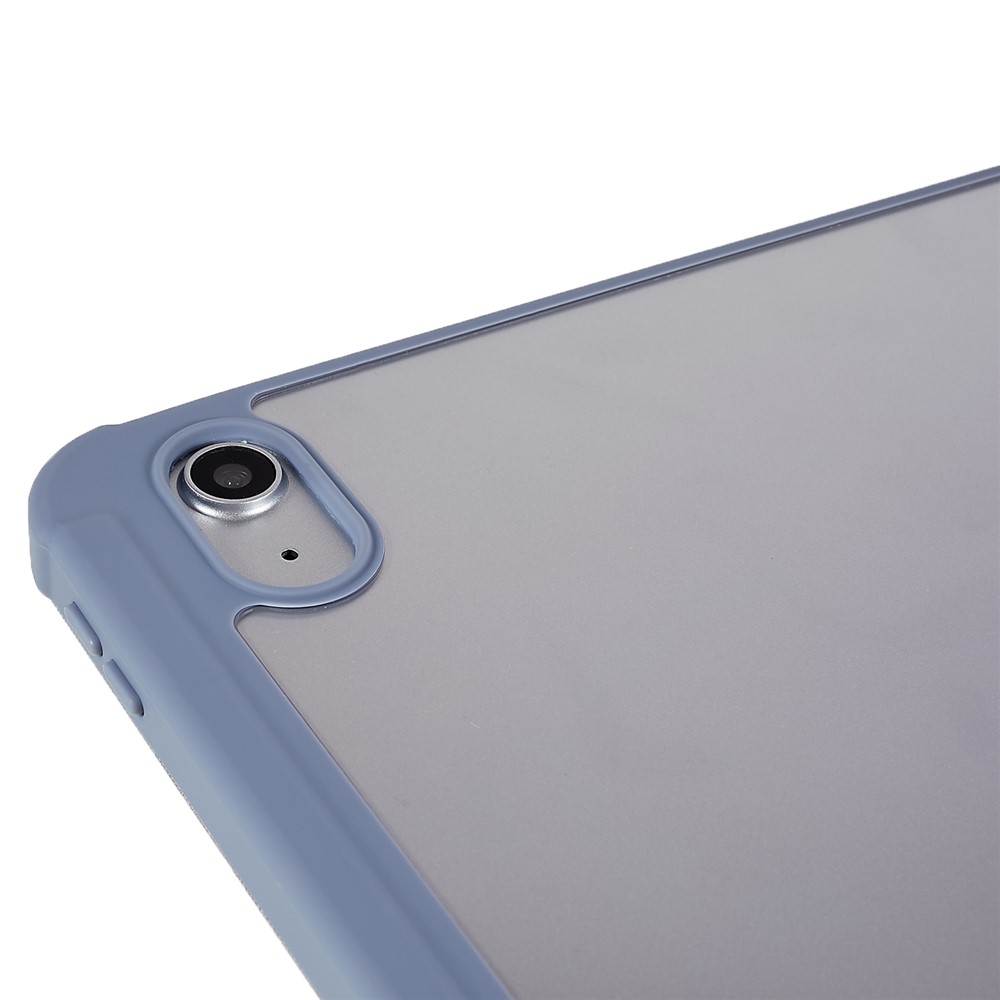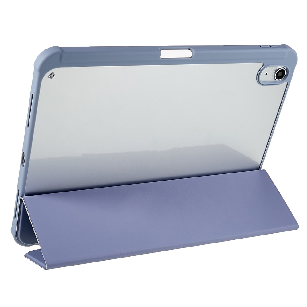 Skin Touch Tri-Fold Stand Tablet Case for iPad (2025) / 10.9 (2022) PU Leather TPU Acrylic Clear Cover – Baby Blue