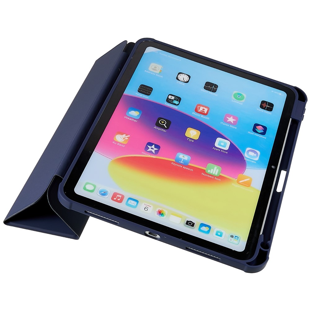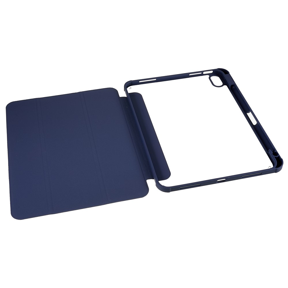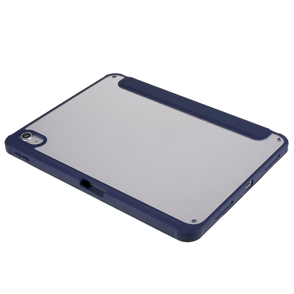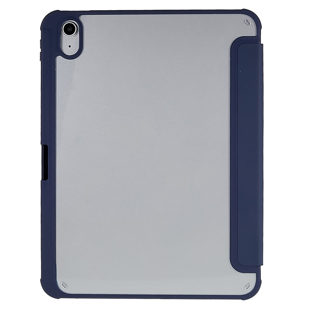 Skin Touch Tri-Fold Stand Tablet Case for iPad (2025) / 10.9 (2022) PU Leather TPU Acrylic Clear Cover – Blue