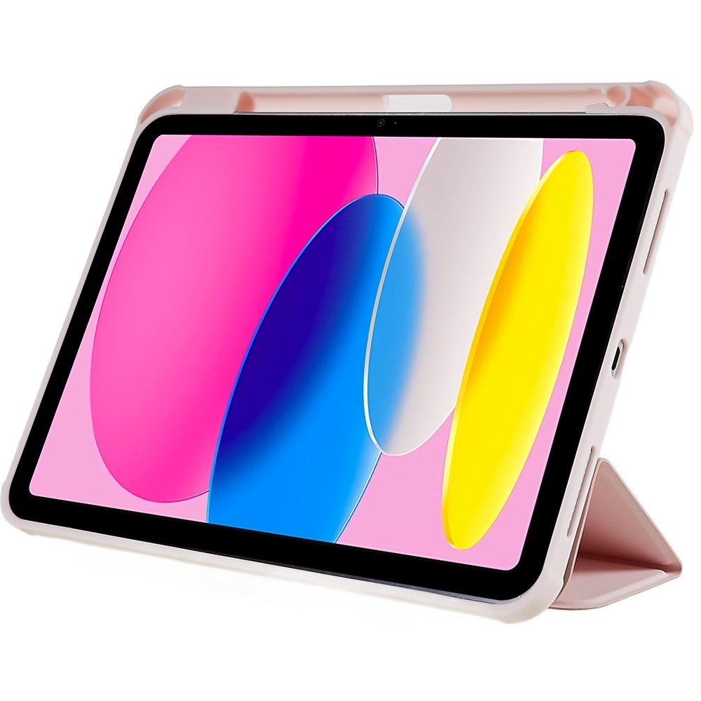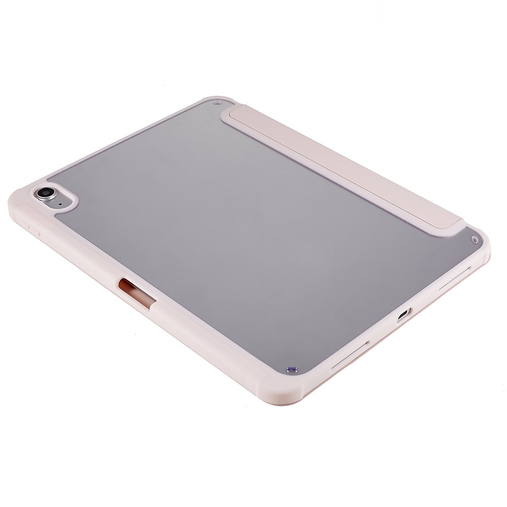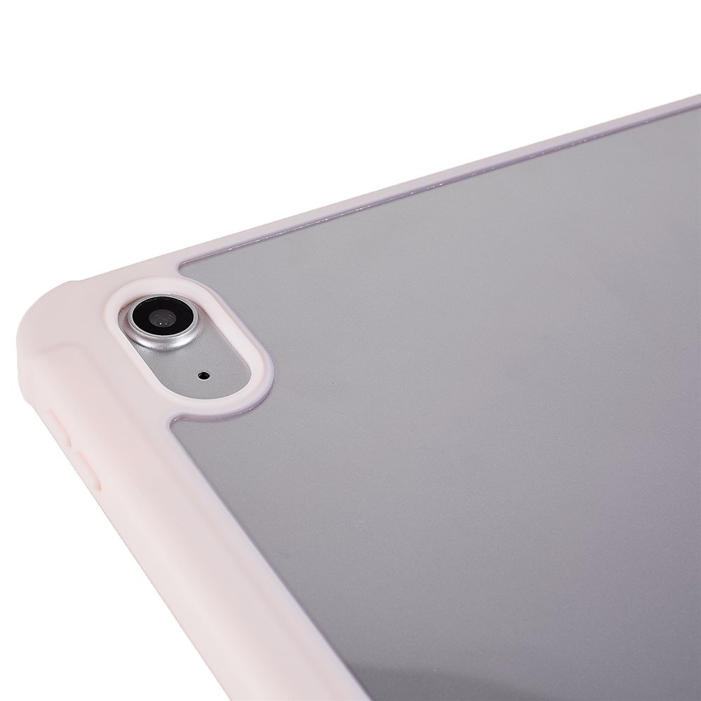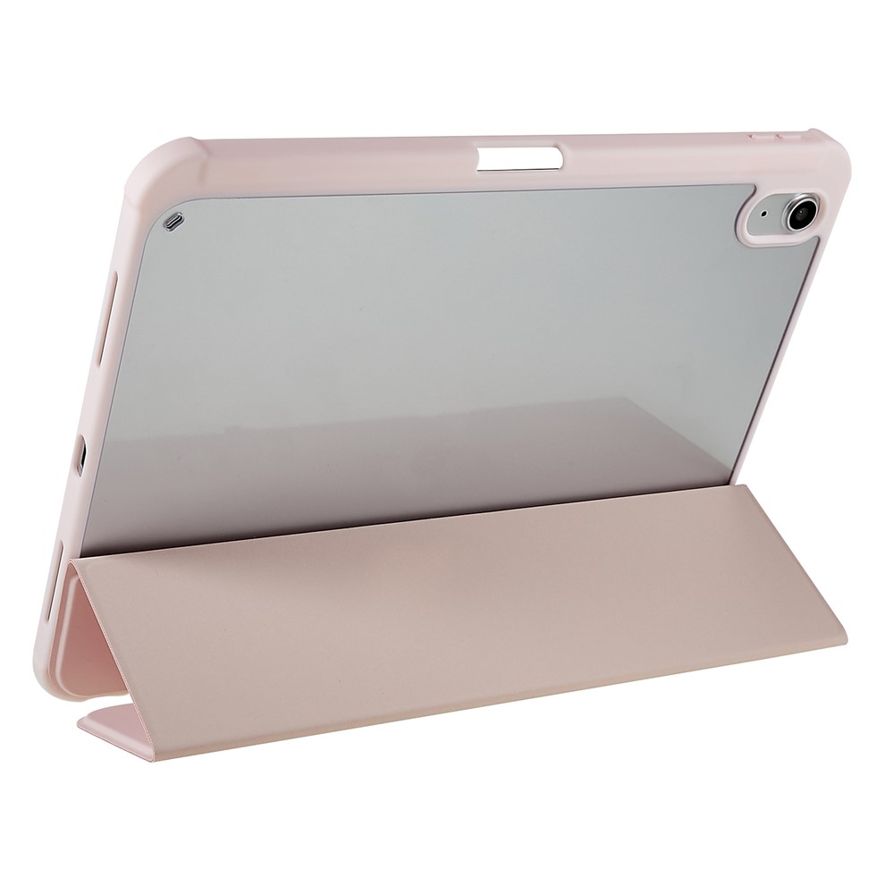 Skin Touch Tri-Fold Stand Tablet Case for iPad (2025) / 10.9 (2022) PU Leather TPU Acrylic Clear Cover – Pink