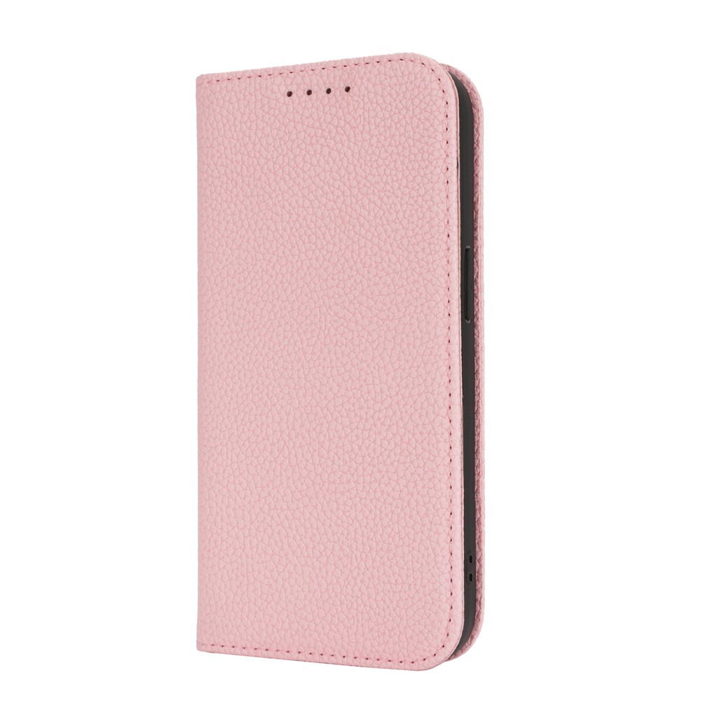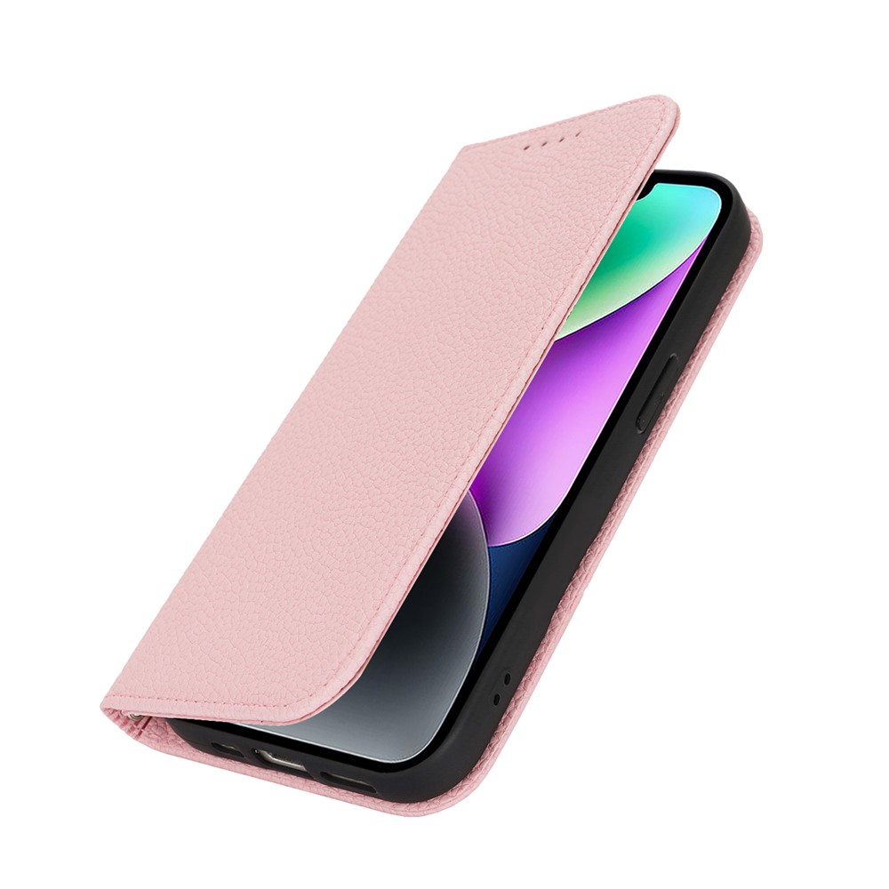 Stand Case for iPhone 14 / 13 Litchi Texture Leather Flip Phone Cover with Strap / Wallet - Pink $18.36