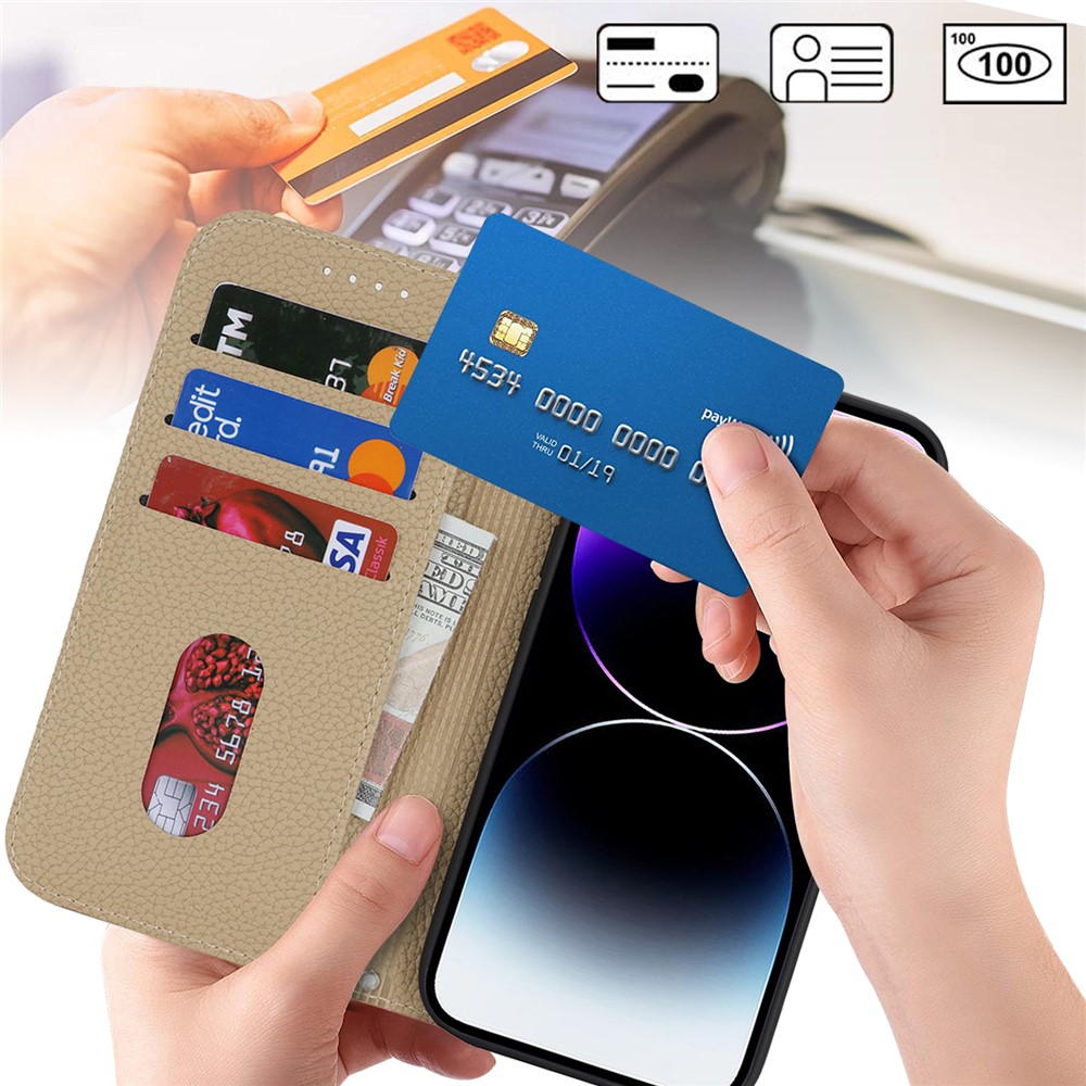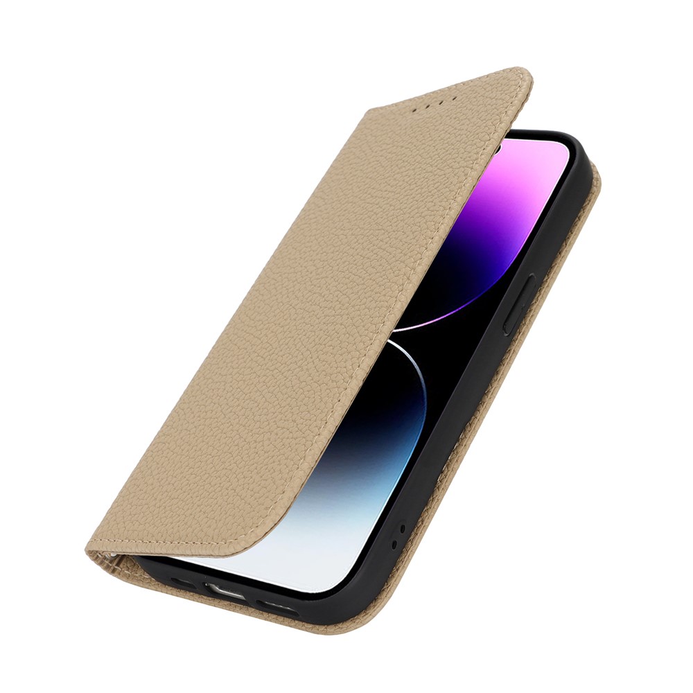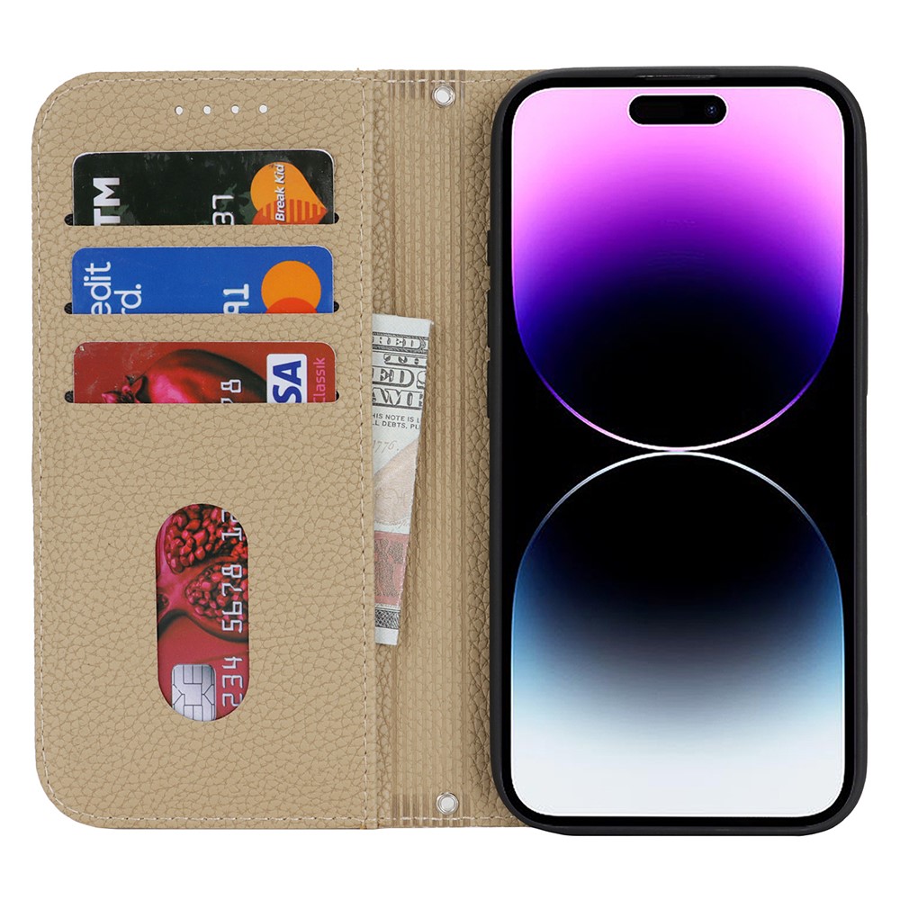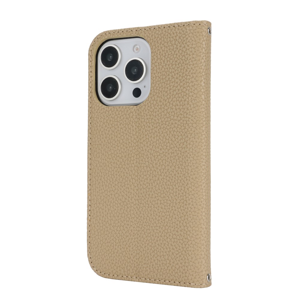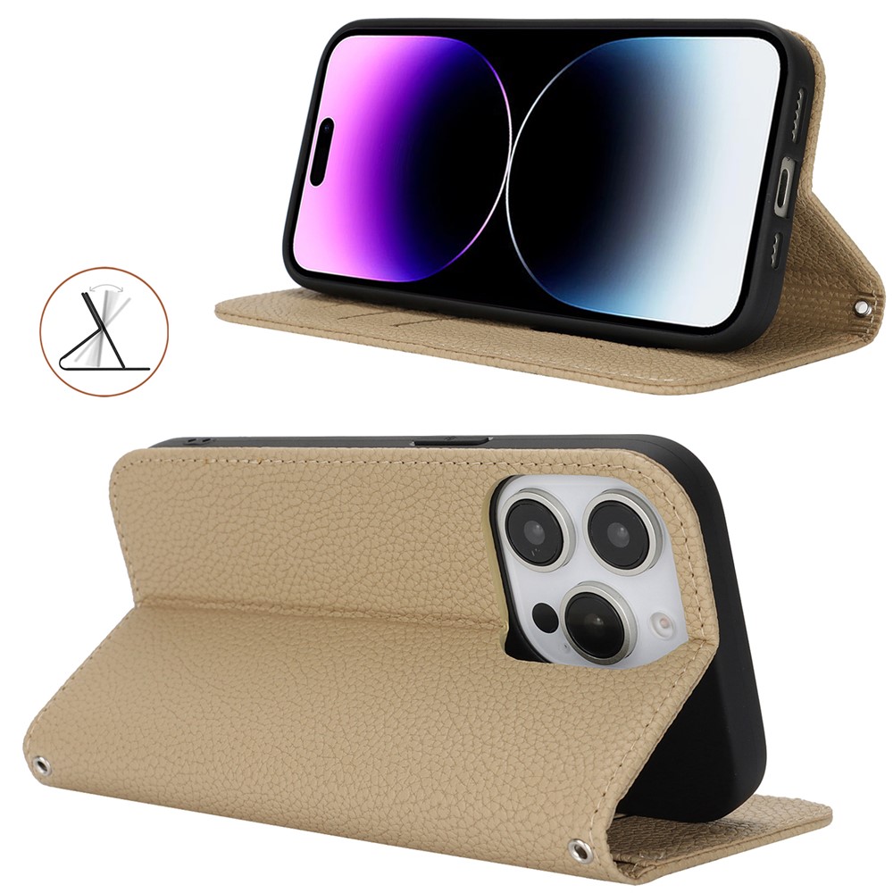 Stand Case for iPhone 14 Pro Max Litchi Texture Leather Flip Phone Cover with Strap / Wallet - Light Brown $18.32