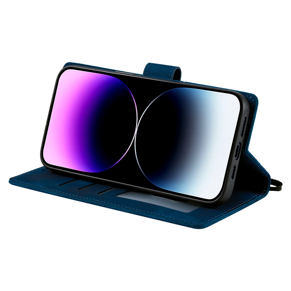 Style 018 For iPhone 13 Case Imprinted Totem Skin Feel Wallet Leather Phone Cover – Blue