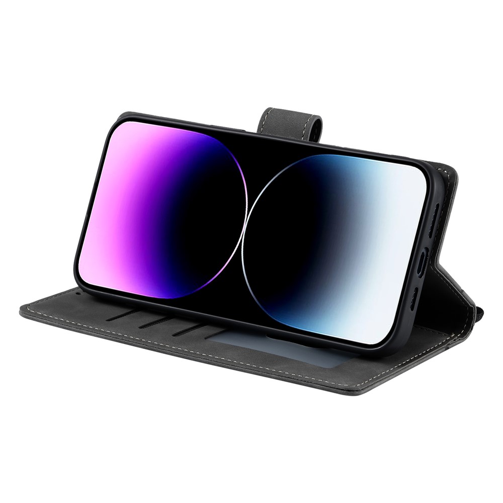 Style 018 For iPhone 14 Pro Case Imprinted Totem Skin Feel Wallet Leather Phone Cover – Grey
